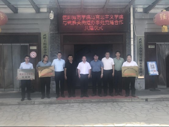 双方相关负责人在党建合作、学生就业服务、科学研究、成果转化、实习实训基地共建等方面进一步交流,达成相关合作意向,并向武胜关街道办事处授予信阳师范学院beat365在线唯一官网党建合作共建单位、思想政治教育实践基地、信阳师范学院“就业实习基地”牌匾。