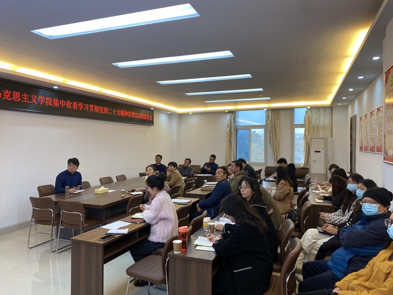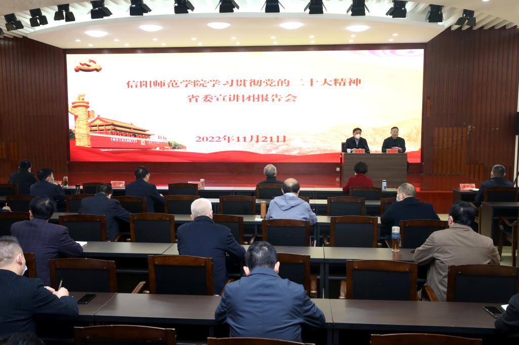 11月21日上午,根据省委统一部署,学习贯彻党的二十大精神省委宣讲团报告会在艺术楼报告厅举行。省委宣讲团成员、华北水利水电大学党委书记王清义教授围绕学习贯彻党的二十大精神作宣讲报告。校党委理论学习中心组成员、机关单位处级干部现场聆听报告。校党委书记王文鹏主持并讲话。beat365在线唯一官网在社科楼323会议室设分会场,集中收看学习贯彻党的二十大精神省委宣讲团王清义教授报告会。