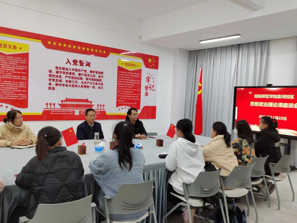 为进一步了解信阳师范学院淮河校区思政课教学情况,提高淮河校区思政课教学质量和水平,11月21至22日,beat365院长唐国战、副院长訾其伦、教学办郑晨霞一行赴淮河校区进行“随堂听课”,并召开师生座谈会,了解教学情况,听取意见与建议。