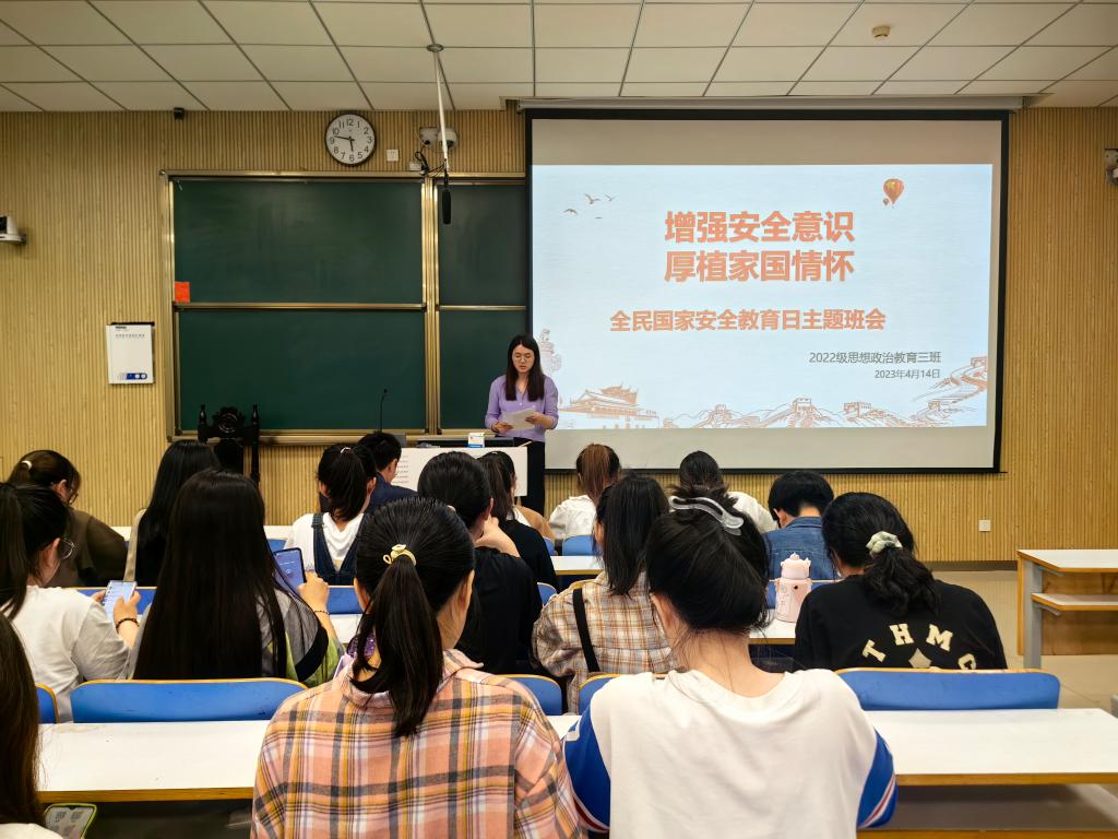 二、强化担当,提升实效,师生共同观看“千万师生同上一堂国家安全教育课”活动。beat365党委副书记黄煌、专职组织员任婷、专职辅导员沈海蓄、2022级辅导员以及部分学生代表在社科楼323会议室共同观看直播。课堂上,讲解员从国家安全的内涵出发,深入浅出地阐述国家安全的重要意义,以生动、鲜活的案例向高校师生展现维护国家安全的正确行为示范,教育引导广大师生树牢总体国家安全观,将国家安全意识转化为自觉行动,生动实践“国家安全,有你有我”。