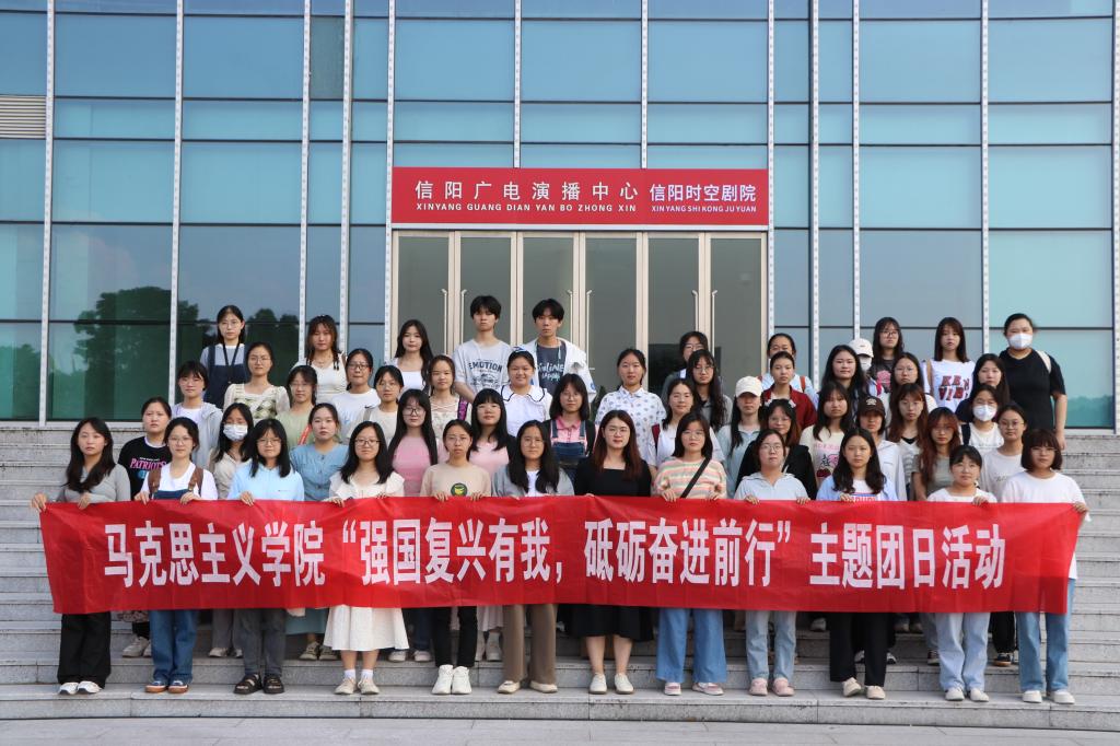 6月13日,beat365在线唯一官网组织师生前往信阳广电演播中心开展“强国复兴有我,砥砺奋进前行”主题团日活动。beat365专职辅导员沈海蓄、思政课教师吴梦云以及2021级、2022级学生代表共同参加活动。