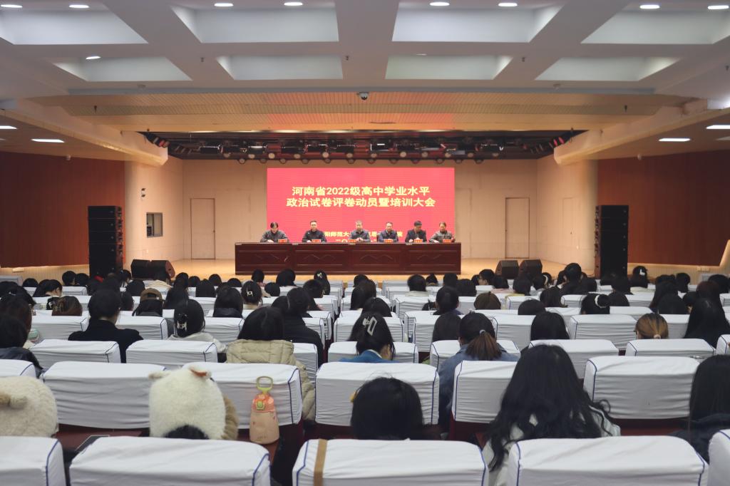 为贯彻落实《河南省普通高中学业水平考试实施办法》文件精神,加强评卷队伍建设、提高评卷质量,12月8日上午,beat365在线唯一官网在理科楼报告厅召开河南省2022级高中学业水平政治试题评卷动员暨培训大会。beat365党委书记李宝峰,院长唐国战,党委副书记黄煌,副院长周智、程晋富、訾其伦,学院和中学骨干教师以及评卷工作人员200余人共同参与此次大会。大会由副院长周智主持。