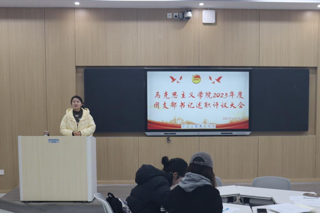 陶青青对各团支部述职情况进行点评。首先,她充分肯定了2023年全体团支部书记工作取得的成绩,认为15个团支部能够以习近平新时代中国特色社会主义思想为指导,充分发挥团支部教育团员、管理团员、监督团员的作用,在思想引领、团结凝聚师生以及促进学院工作等方面取得了明显成效。随后,陶青青对各团支部的建设提出三点要求:一要推进政治理论学习系统化,全面贯彻习近平总书记关于青年工作的重要思想,增强作为共青团员的使命感;二要做好团组织生活记录,加强团支部建设工作可视化、痕迹化管理;三要整改落实见真章,不断夯实团支部建设基础,定期分析问题,及时整改,将团支部建设工作与学院各项工作结合起来,服务学院中心工作。大会最后,由团委对各团支部进行星级评定。