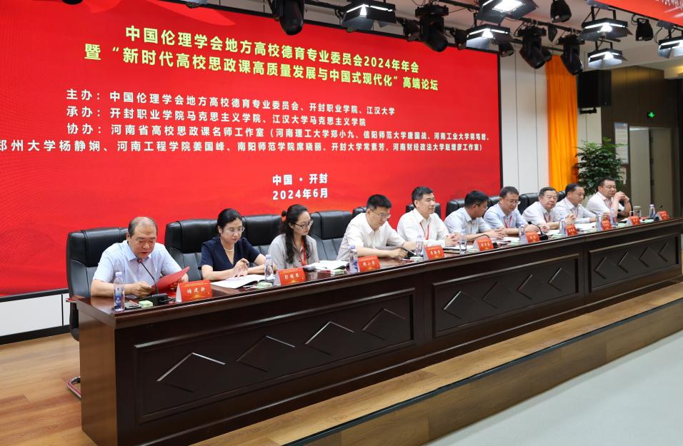 6月15日,中国伦理学会地方高校德育专业委员会2024年年会暨“新时代高校思政课高质量发展与中国式现代化”高端论坛在开封职业学院举行。