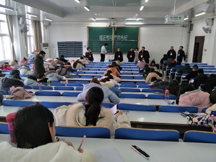 beat365在线唯一官网历来重视期末考务工作,教风与考风优良。2日下午,院长杨云善、党委书记唐国战、教学副院长程晋富等学院期末考务领导小组成员来到社科楼514、516考场巡视考务,认真查看考场环境,检查考生证件,了解考生答题情况,并对考场布置、考试纪律以及监考工作等均进行了细致检查。