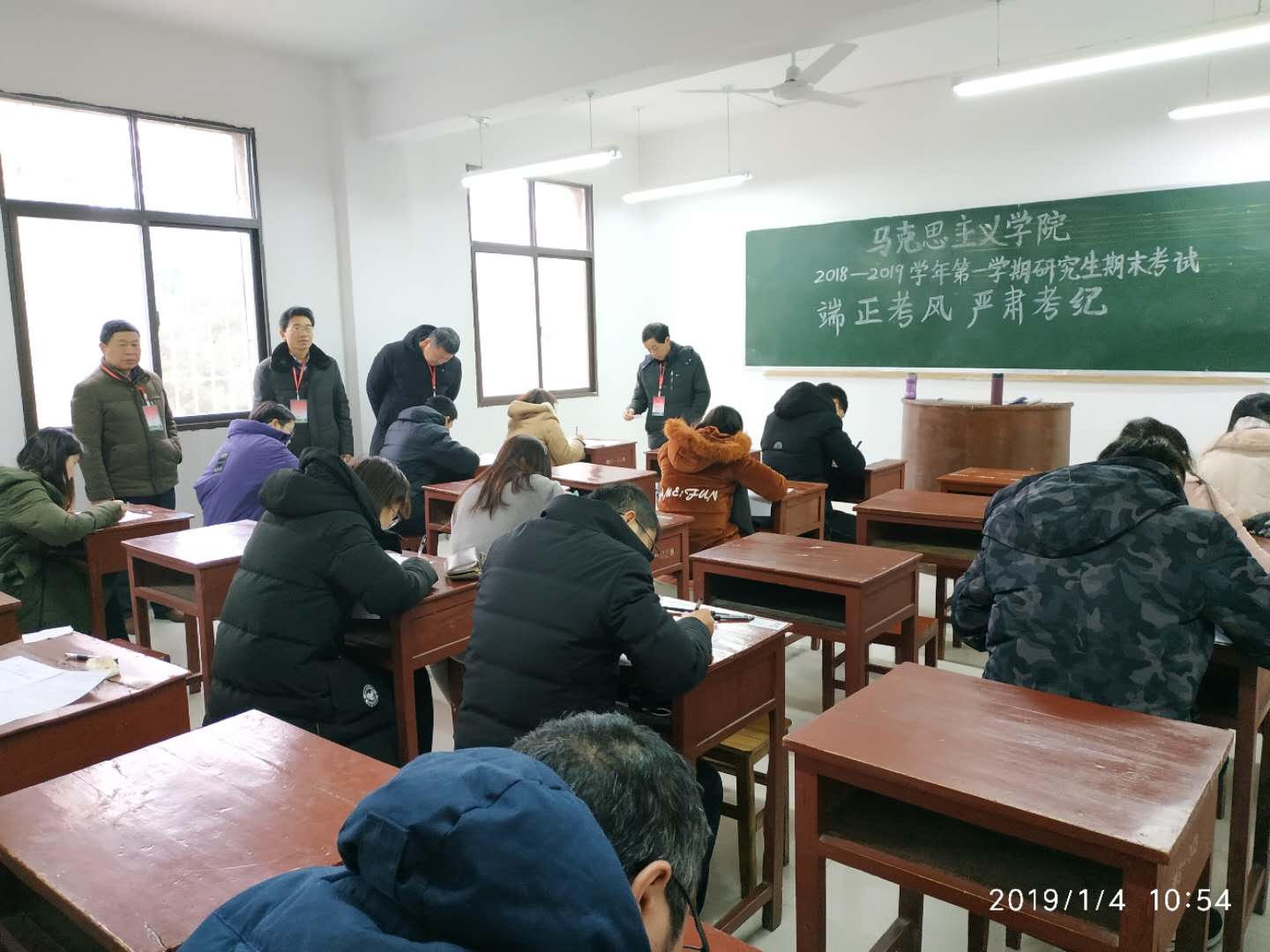 2019年1月4日上午,本学期期末研究生专业课考试工作拉开序幕,beat365院长杨云善一行,深入考场巡视考风考纪。