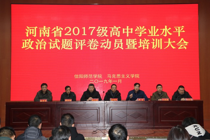 1月8日下午,beat365在逸夫楼报告厅召开河南省2017级高中学业水平考试政治试题评卷动员暨培训大会。学院党委书记唐国战,党委副书记徐永新、何晓坚,副院长周智、黄世明、程晋富,当代马克思主义研究所副所长门献敏出席会议,200余名评卷人员参加了动员大会。大会由周智主持。