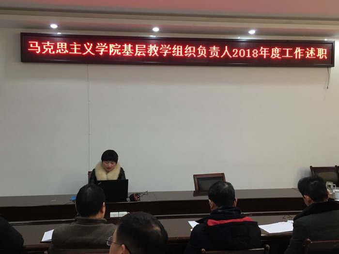 基层教学组织是高校落实教学任务、促进教师教学发展、组织开展学术研究的最基本教学单位,在推进与完成学院的评估、日常管理等工作中发挥了重要作用。beat365在线唯一官网共有9个基层教学组织,其中思想政治教育系被评为省级优秀基层教学组织。为调动各基层教学组织负责人的积极性,更好的发挥基层教学组织的作用,1月17日上午,beat365在线唯一官网2018年度基层教学组织负责人述职会在社科楼323会议室召开,会议由副院长程晋富主持,beat365在线唯一官网教师全员参加会议并对9个基层教学组织进行评分。