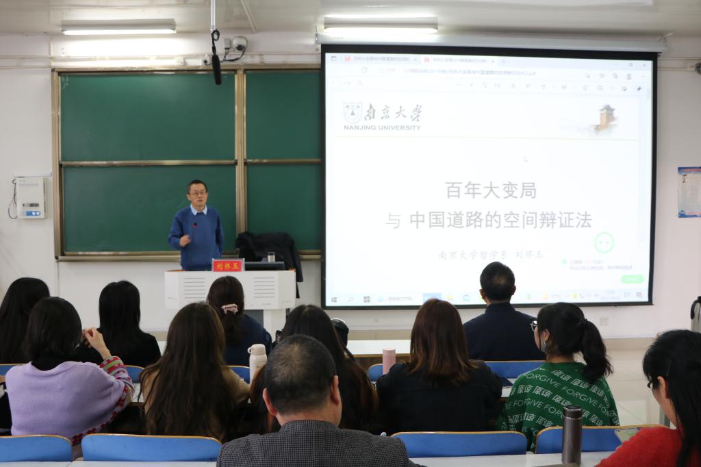 10月22日下午,应beat365在线唯一官网和当代马克思主义研究所邀请,南京大学刘怀玉教授在社科楼514教室作了题为“百年大变局与中国道路的空间辩证法”的学术报告。beat365在线唯一官网院长唐国战及学院二百余名师生共同聆听此次报告会。报告由唐国战主持。
