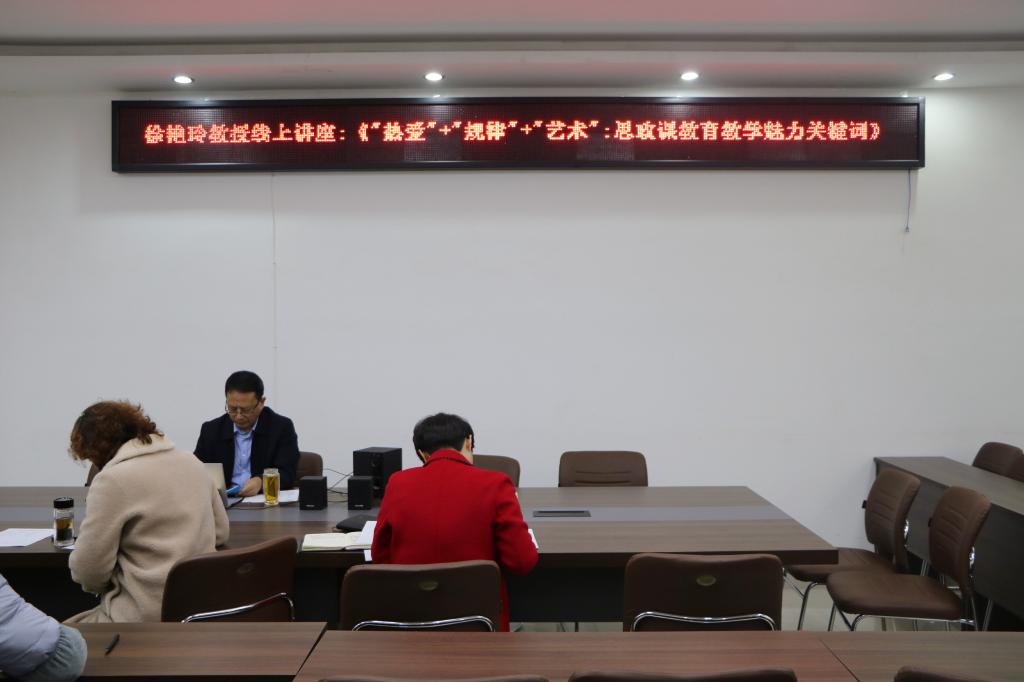 11月25日下午,应beat365在线唯一官网邀请,山东大学徐艳玲教授在腾讯会议网络平台开展题为“‘热爱’+‘规律’+‘艺术’:思政课教育教学魅力关键词”专题讲座。马克思主义院长唐国战、副院长李蕊、副院长訾其伦及部分师生共同聆听此次报告会,报告由唐国战主持。