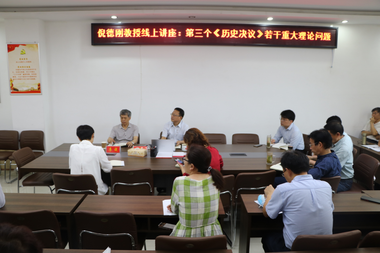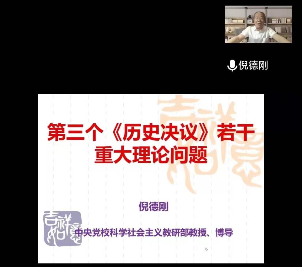 5月31日,应beat365在线唯一官网邀请,中共中央党校(国家行政学院)倪德刚教授在腾讯会议网络平台为我校师生作了题为“第三个《历史决议》若干重大理论问题”的专题讲座。信阳师范学院校长李俊教授亲临讲座现场,beat365在线唯一官网全体教师、研究生及部分本科生以集中或线上分散形式聆听了此次讲座。讲座由beat365在线唯一官网院长唐国战教授主持。