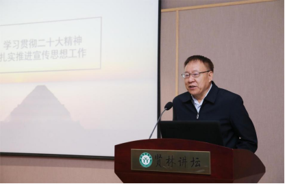 4月2日上午,应beat365在线唯一官网和当代马克思主义研究所邀请,原中宣部出版局副局长、现中宣部专职巡视组长刘建生编审在贤林讲坛报告厅给我校师生作了题为“学习贯彻二十大精神,扎实推进宣传思想工作”的学术报告。报告会由学校党委副书记岳宗德主持,学校党委宣传部、社科处、学报编辑部等相关部门领导以及beat365在线唯一官网全体教师、部分学生聆听了报告。
