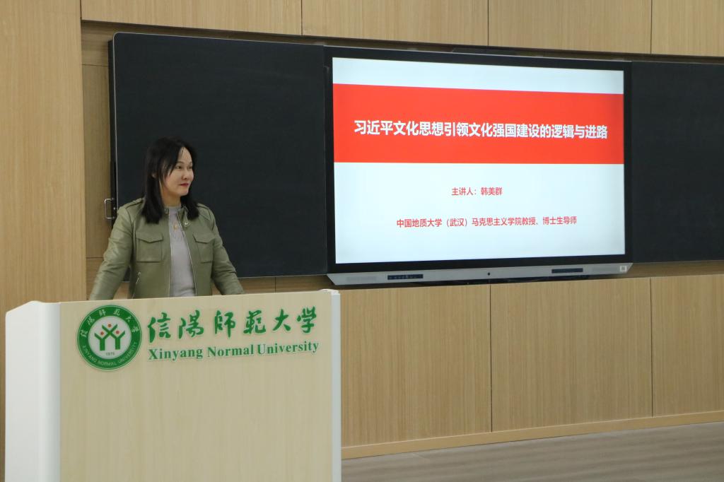 3月27日下午,中国地质大学(武汉)beat365在线唯一官网教授、博士生导师韩美群应邀在社科楼516会议室作了题为“习近平文化思想引领文化强国建设的逻辑与进路”的专题讲座。讲座由学院院长唐国战主持,学院师生代表到场聆听。