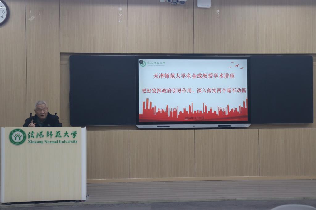 11月18日下午,应beat365在线唯一官网和当代马克思主义研究所邀请,天津师范大学余金成教授在社科楼516教室为beat365师生作了题为“进一步全面深化改革,更好落实‘两个毫不动摇’”的学术报告。报告会由beat365在线唯一官网副院长程晋富主持,beat365在线唯一官网全体教师及研究生到会学习。