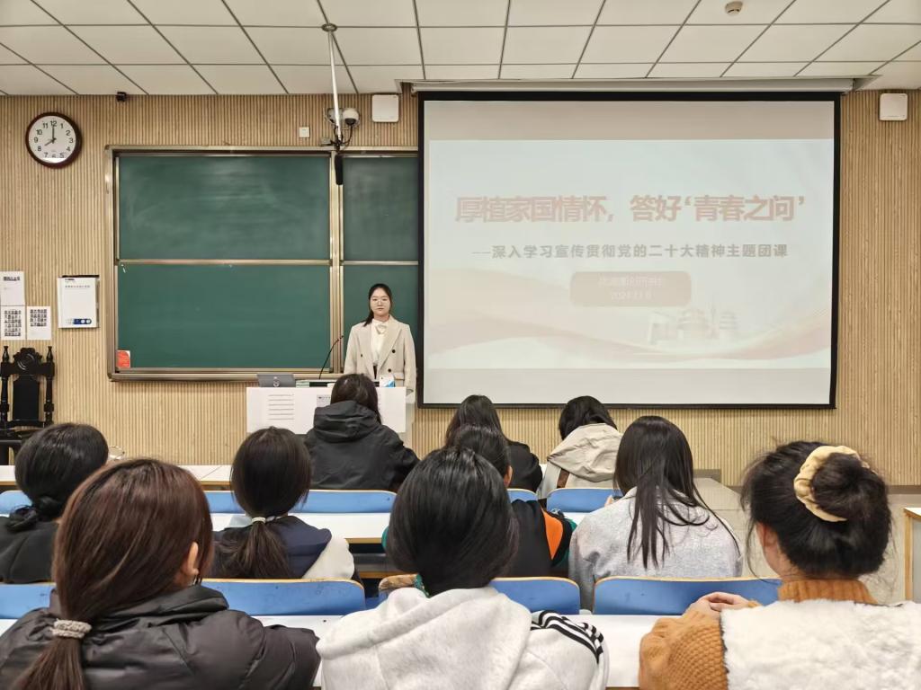 团课伊始,范茜茜以李大钊在《青春》一文中发出的“青春之问”为切入点,探讨青年与时代的关系和个人发展路径。同学们共同讨论如何将理论观点转化为推动社会发展的实际行动,为时代和民族的发展贡献力量。接着,范茜茜指出,党的二十大的顺利召开,为我们指明了前进的方向,提供了行动的蓝图,作为beat365在线唯一官网的青年学子,我们更应该深刻理解和领会二十大精神,将其内化为我们的行动指南,外化为实际行动。最后,范茜茜强调,我们要以青春之姿答好“青春之问”、注重品德修养、加强自我管理,在奋斗中实现青春价值。