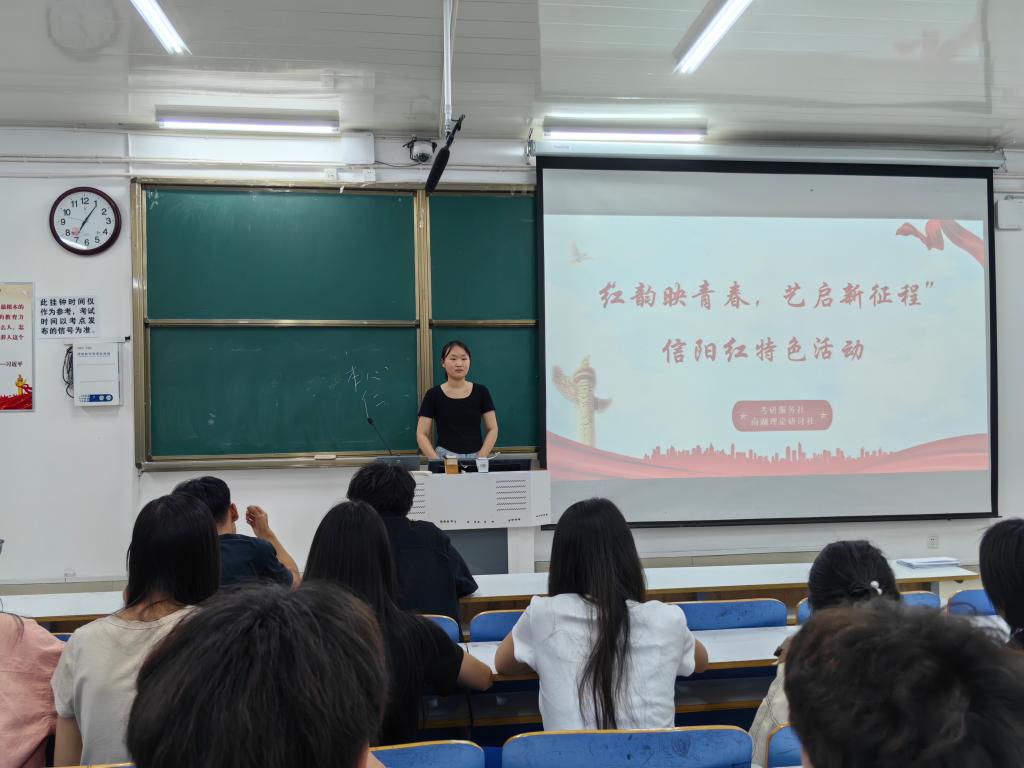 信阳作为鄂豫皖苏区首府所在地,承载着“坚守信念、胸怀全局、团结奋进、勇当前锋”的大别山精神,为引导青年深入理解大别山精神,深化爱国主义教育,4月28日晚上,南湖理论研讨社携考研服务社在社科楼514教室共同举办了“红韵映青春,艺启新征程”信阳红特色活动。