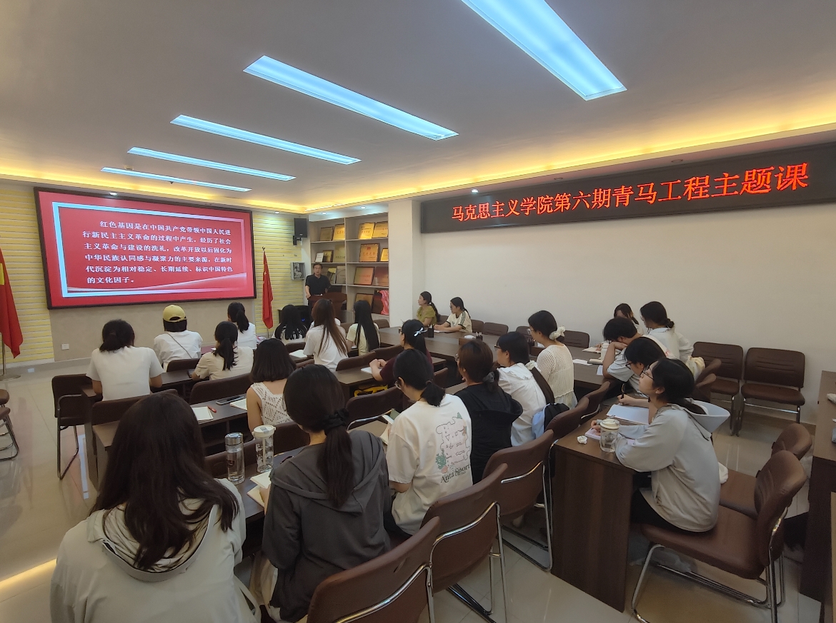 5月20日下午,beat365在线唯一官网“青年马克思主义者”培训工程小组特邀周智老师,在社科楼323会议室为第六期青马工程全体学员讲授“如何传承好红色基因”专题课。