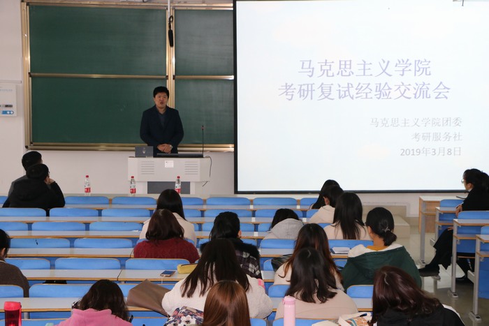 交流会上,常文涛首先发表讲话,针对调剂问题作出讲解。然后,研究生代表和大家分享自己复试的一些心得体会和经验技巧。随后是现场互动环节,现场同学向学姐提出问题,学姐进行答疑解惑。之后,曹栋和大家分享了自己关于考研复试的一些心得和面试的礼貌问题等。最后,孙绪曙对本次会议进行总结,并对即将参加复试的学生表示祝愿。