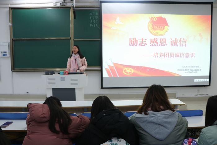 为培养beat365团员诚信意识,养成高尚的道德情操,12月10日下午,beat365“励志·感恩·诚信”主题团课在社科楼516教室顺利召开。beat3652018级全体团员共同参加了此次团课。此次团课由2018级第一团支部团支书靳雨露主持。
