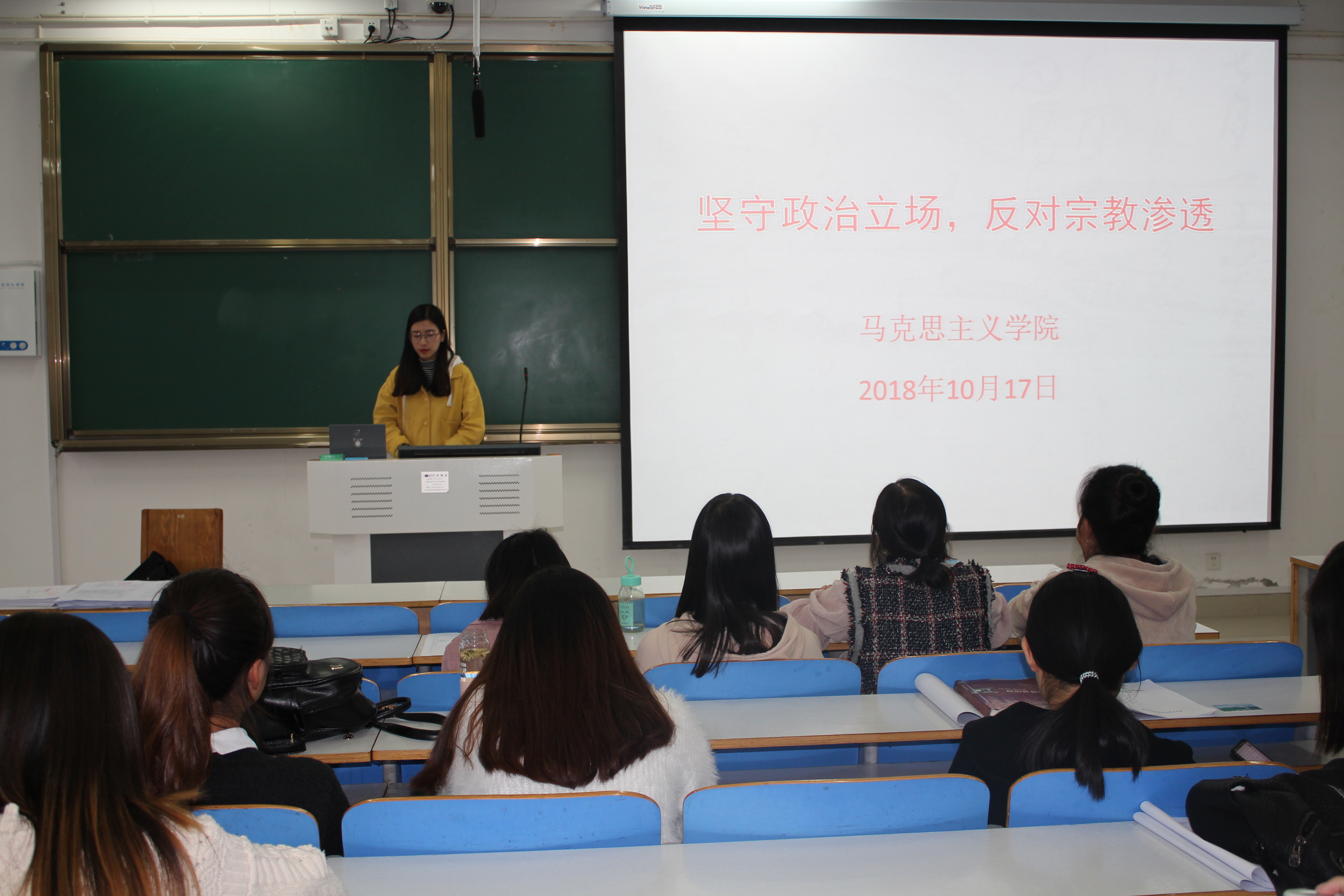 为防止宗教渗透,牢固beat365学子正确政治立场,beat365在线唯一官网2015级思想政治教育专业一班、二班在社科楼516教室召开 “坚守政治立场,反对宗教渗透”主题班会。团委书记曹栋与beat3652015级思想政治教育专业全体学生共同参与班次本次班会。班会由学生辅导员张英主持。