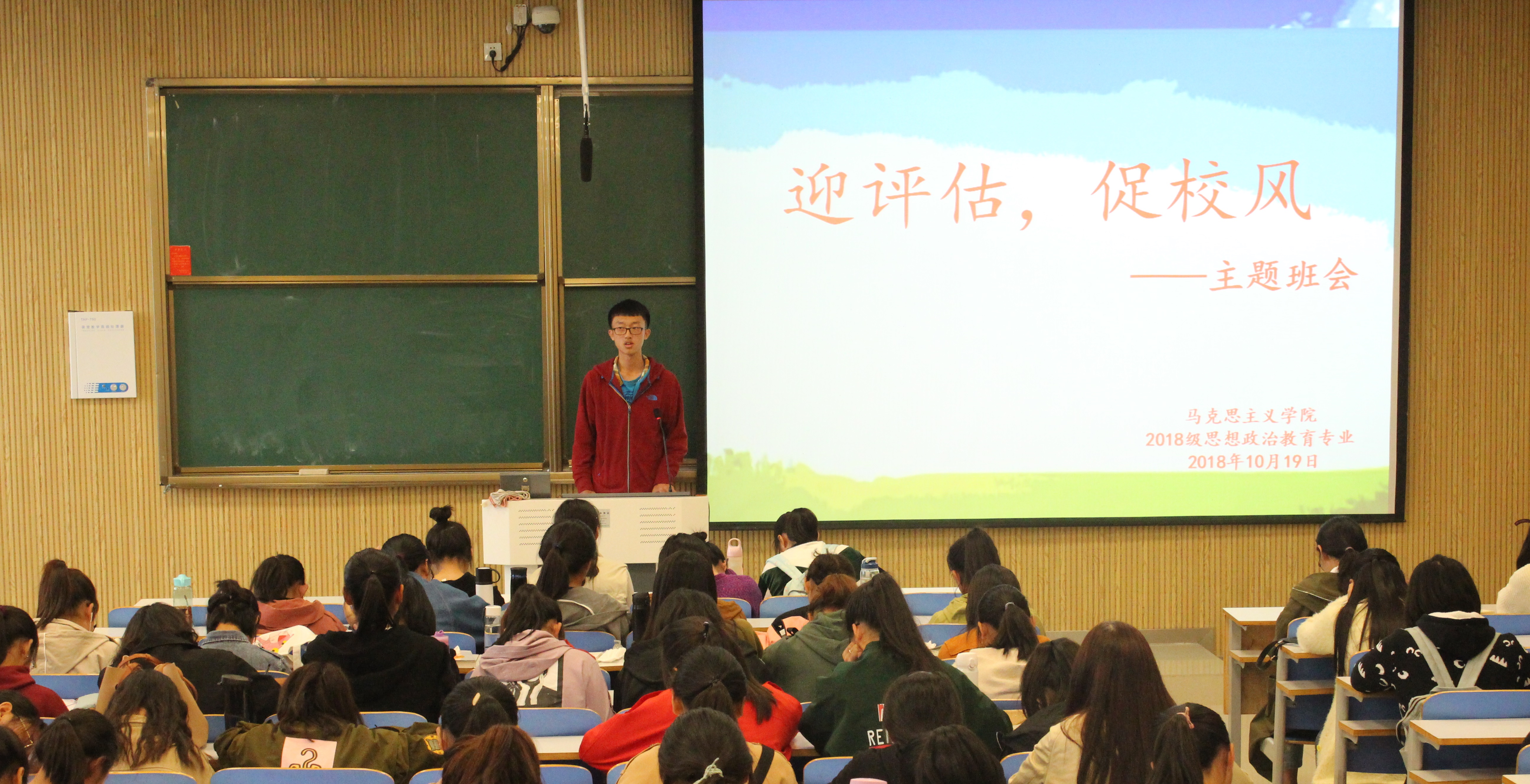 为迎接本科教学评估工作,促进良好校风建设,10月19日上午,beat365在线唯一官网2018级在社科楼515教室顺利开展“迎评估,促校风”主题班会。2018级全体同学共同参加了此次班会。班会由思政一班班长邢子豪和思政二班班长杨康主持。