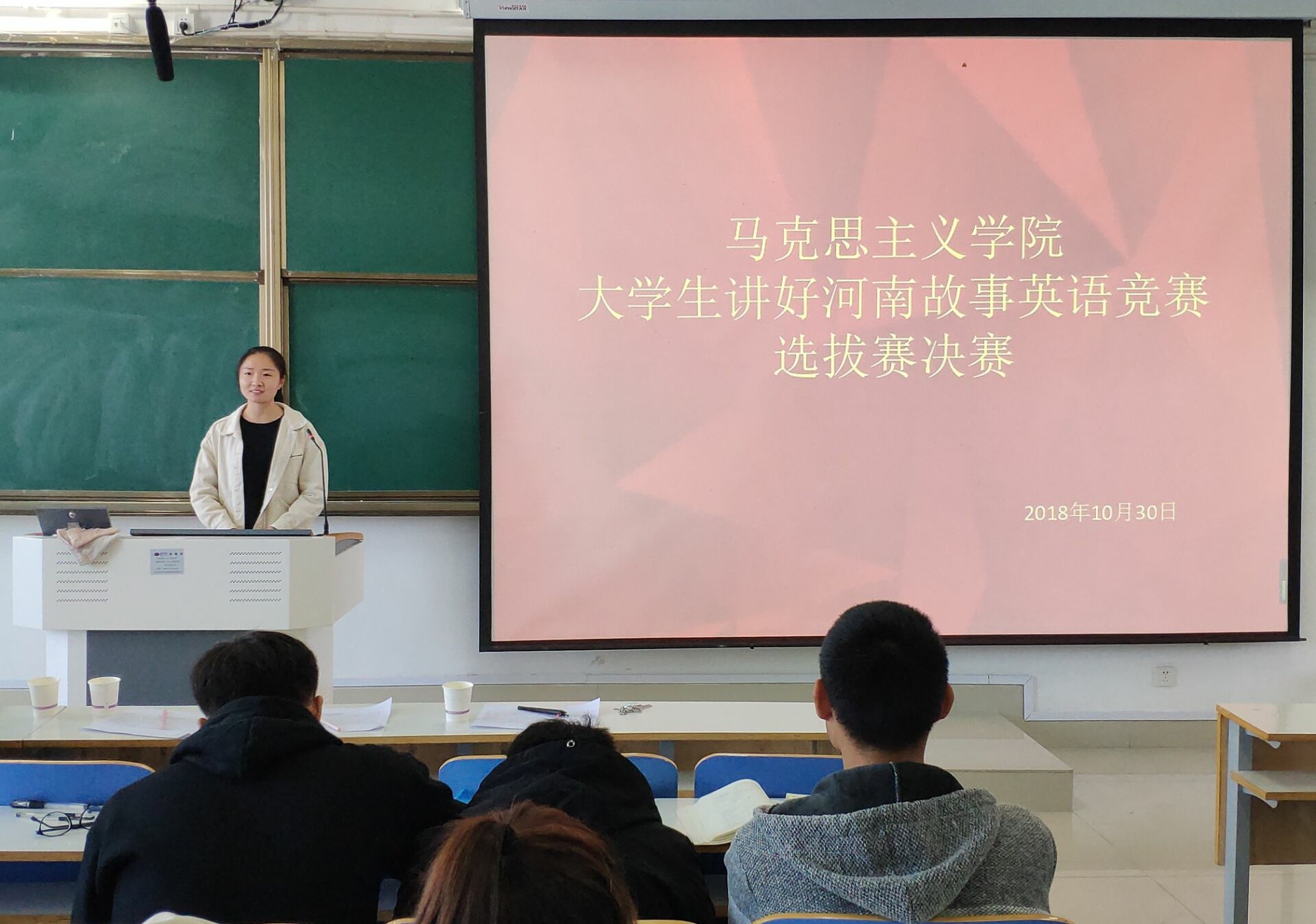 为鼓励在校大学生利用英语宣讲河南,传播好新时代河南声音,10月30日上午,beat365在线唯一官网在社科楼514教室开展“大学生讲好河南故事英语竞赛选拔赛”决赛。科研秘书常文涛、团委老师曹菁菁及2018级全体学生共同观看此次比赛。比赛由南湖理论研讨社社长张静主持。