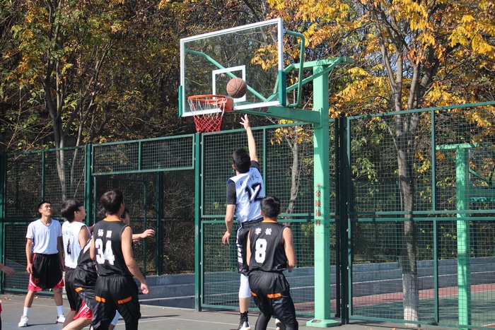 11月19日,beat365在线唯一官网与旅游学院男篮比赛在西篮球场拉开帷幕。本场比赛双方各有五名队员参加。