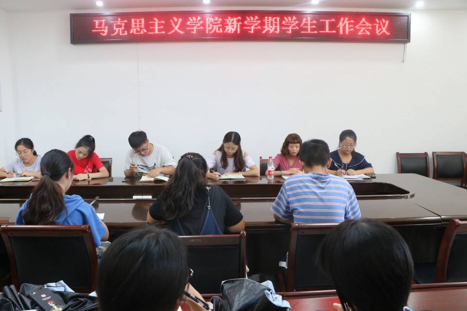会上,学生会主席史弘扬首先对上学期的各项工作进行了简要的总结和回顾,对新学期开展迎新工作、入学教育及学生管理等方面的工作进行了详细的安排和部署。张雅琼对高校“班团一体化”模式进行宣传和讲解;要求实现日常教育的主题化,以班级团支部为单位进行团十八大的学习。随后,她对迎新工作提出两点要求,一是坚持正确的舆论导向,加强舆论审核力度;二是重视学生日常管理,强化思想引领。最后,各主席团成员就其分管部门的工作安排进行热烈交流。