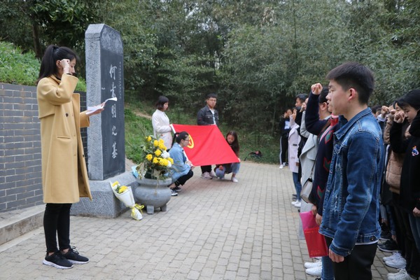 上午七点半,beat365学生代表排着整齐的队伍,怀着无比崇敬的心情前往我校景明墓,向先贤表达敬仰和怀念。抵达景明墓后,赵亚茹首先为大家简介明代“文坛四杰”之一何景明的生前事迹,学生代表向文学圣德何景明敬献花圈,接着,主持人组织全体人员向长眠于此的先人默衰,以此表达对先人的缅怀和崇高敬意。最后,刘润蕊、赵亚茹带领大家重温入党入团誓词,心怀祖国和人民,并郑重承诺:将继续践行入党入团誓言,勤奋学习,积极工作,做到吃苦在前享乐在后,为共产主义事业而奋斗。活动结束后,全体人员在景明墓入口处合影留念。
