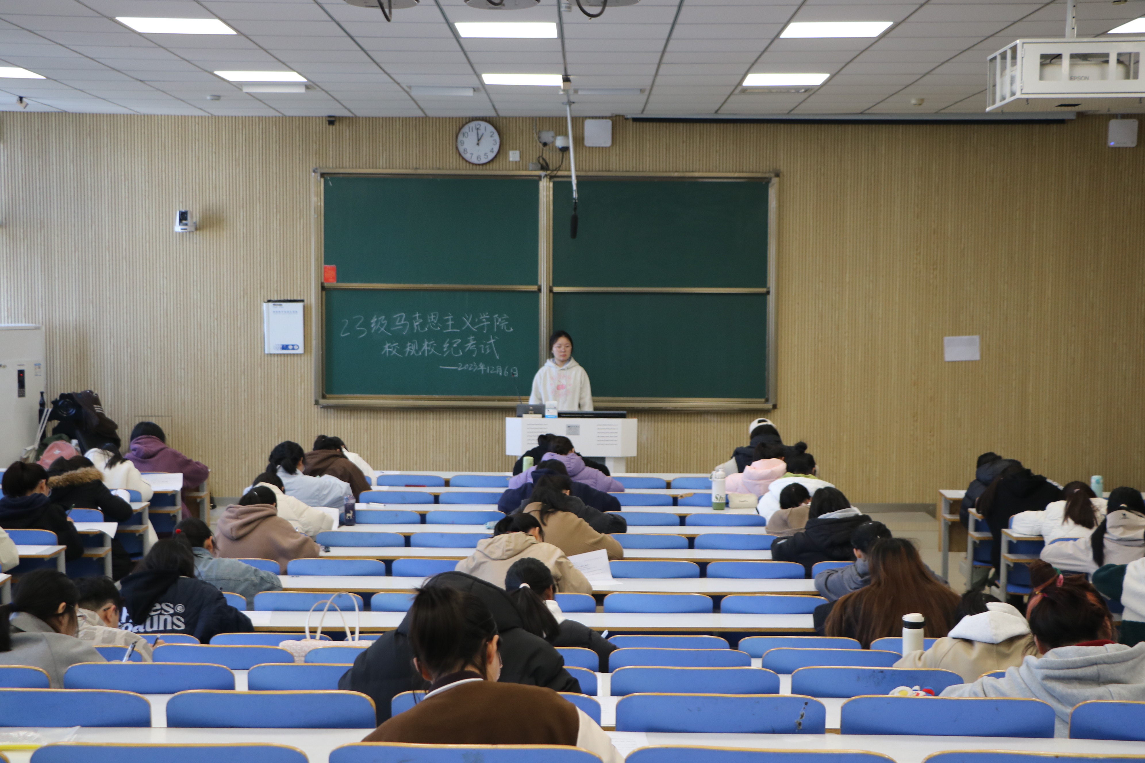 为深化学生规则意识、加强校风学风建设,推动学生管理工作的顺利开展,12月6日中午,beat365在线唯一官网在社科楼514、515教室组织2023级新生进行校规校纪考试。beat3652023级全体新生共同参与考试。生活劳卫部郑慧芳、陈颖担任监考员。