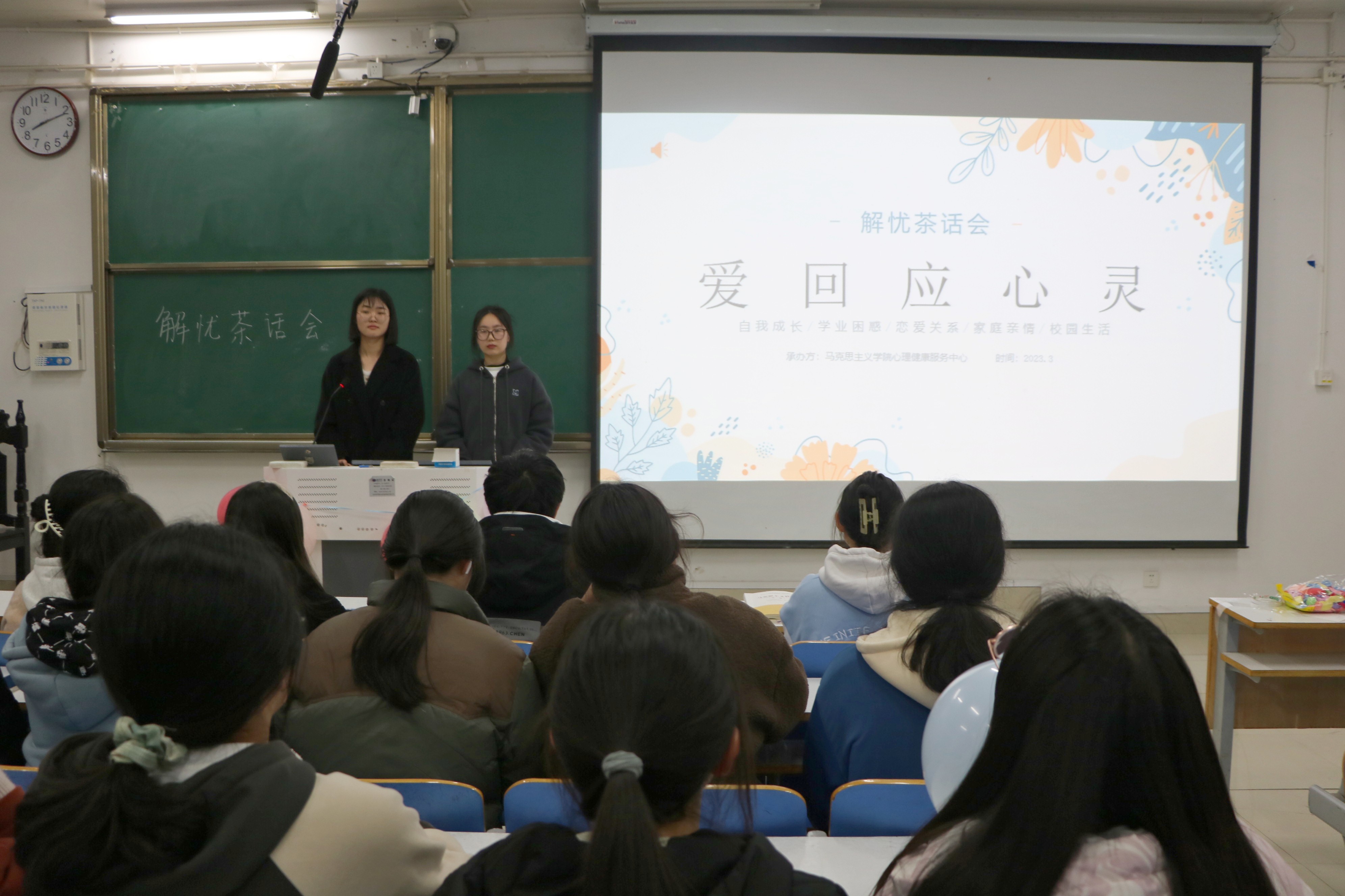 为了营造良好的心理健康教育氛围,增强同学们心理素质,3月18日晚上,beat365在线唯一官网分团委学生会心理健康服务中心在社科楼514教室开展“爱回应心灵”解忧茶话会活动。茶话会由王懿、刘艺钒主持。