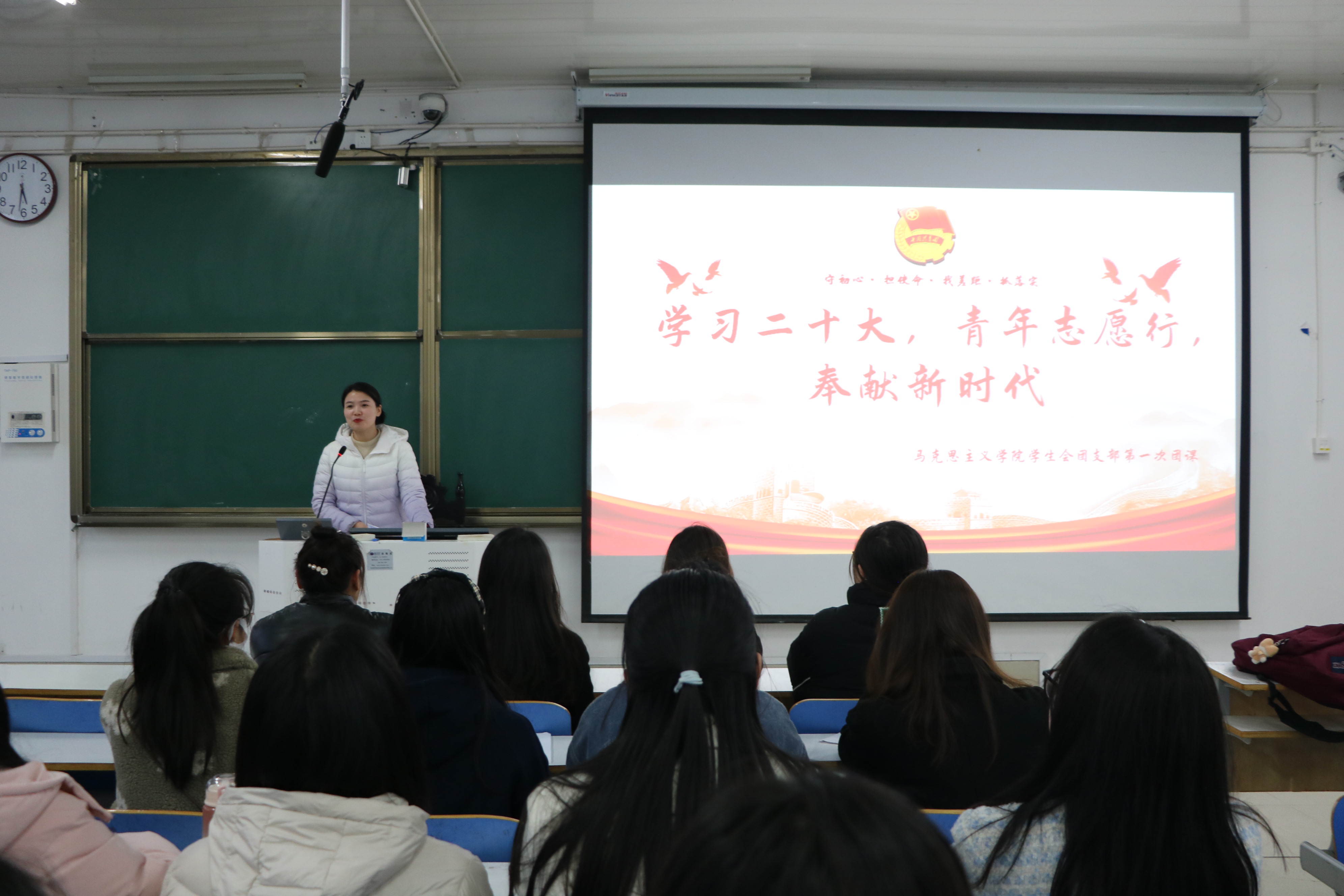 为深入学习贯彻党的二十大精神,鼓励青年积极参与志愿活动,3月22日下午,beat365在线唯一官网在社科楼514教室开展以“学习二十大,青年志愿行,奉献新时代”为主题的学生会团支部第一次团课,团委书记陶青青和学生会团支部全体成员共同参加本次团课。团课由陶青青讲授。