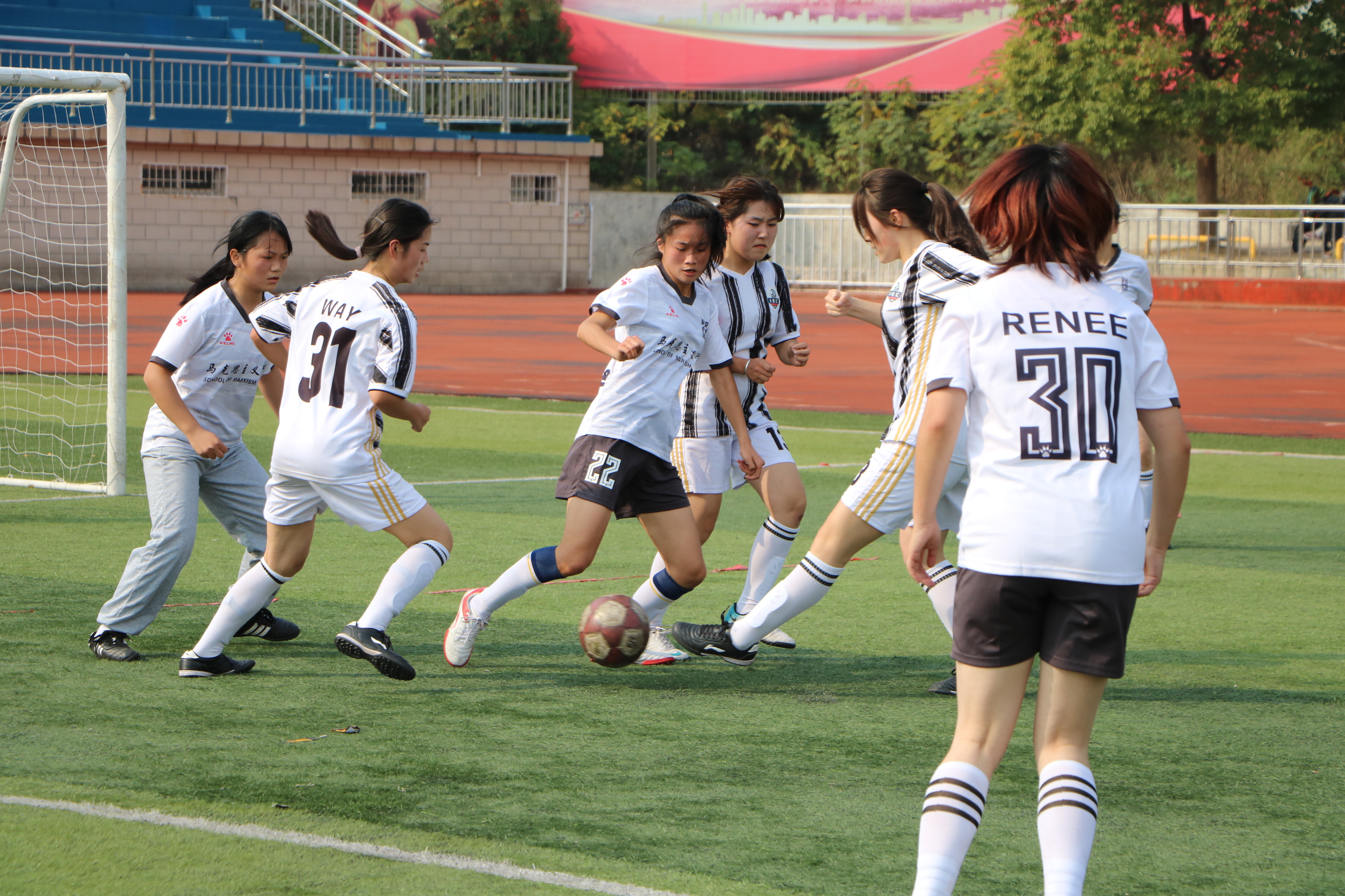 追逐梦想,点燃青春。11月7日中午,第二届“逐梦杯”小组足球赛在西操场拉开帷幕。beat365在线唯一官网女子足球队同国际教育学院女子足球队展开激烈对决。两院学子共同观看此次比赛。