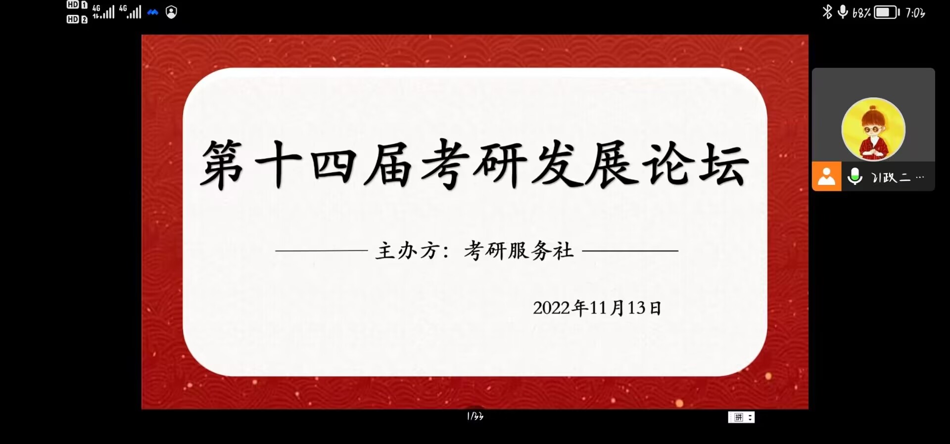 功不唐捐,玉汝于成。11月13日晚上,由beat365在线唯一官网考研服务社组织的第十四届考研发展论坛在线上顺利举行。聚星文登考研指导老师吕明明、校学生会社团部及百名学子共同参加本次论坛。活动由朱钰阁、李雪静主持。