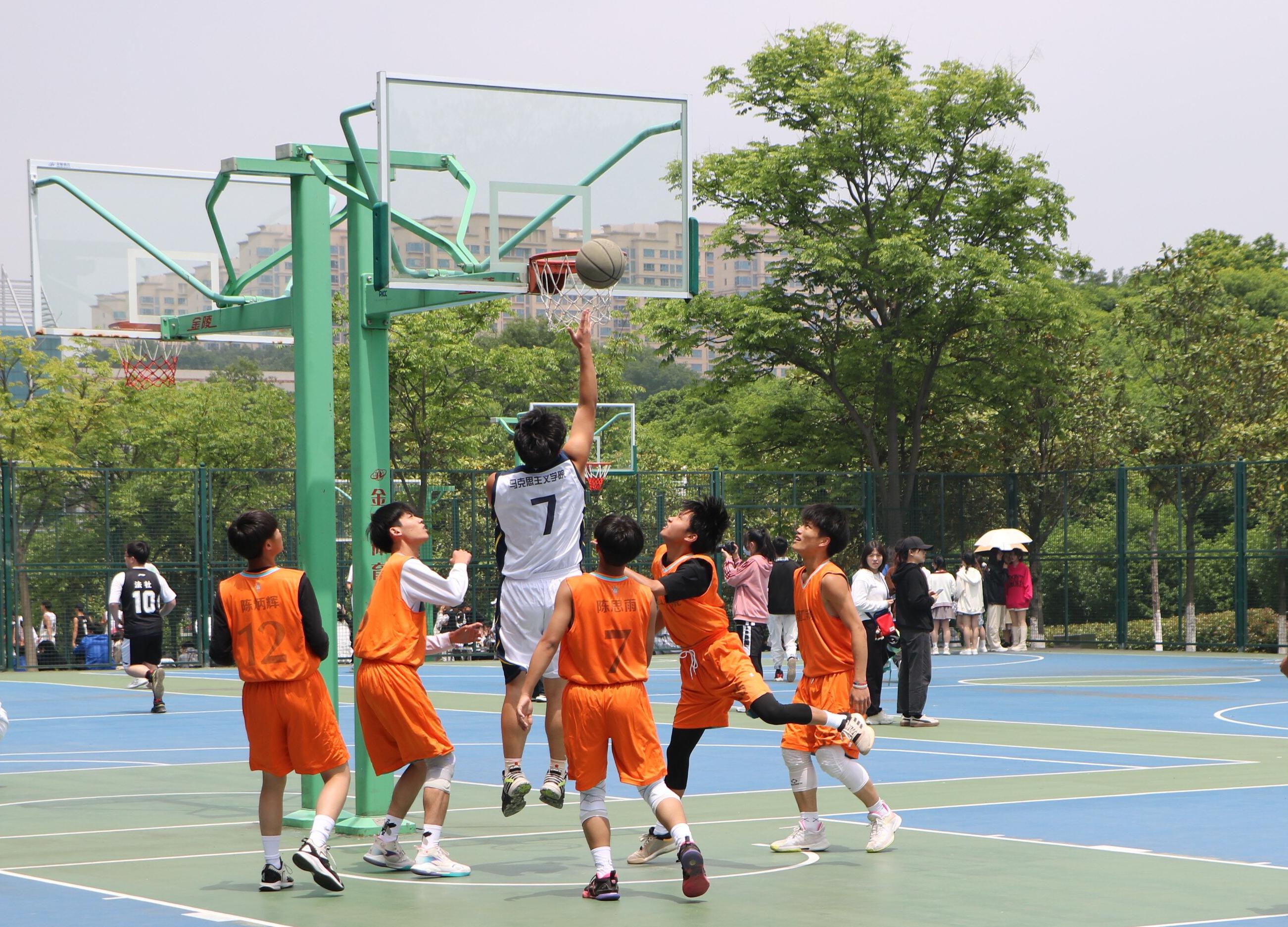 4月29日中午,beat365在线唯一官网男子篮球队与建筑与土木工程学院男子篮球队在西篮球场进行第二十届“谭山杯”男篮小组赛第四场。两院学子共同观看此次比赛。