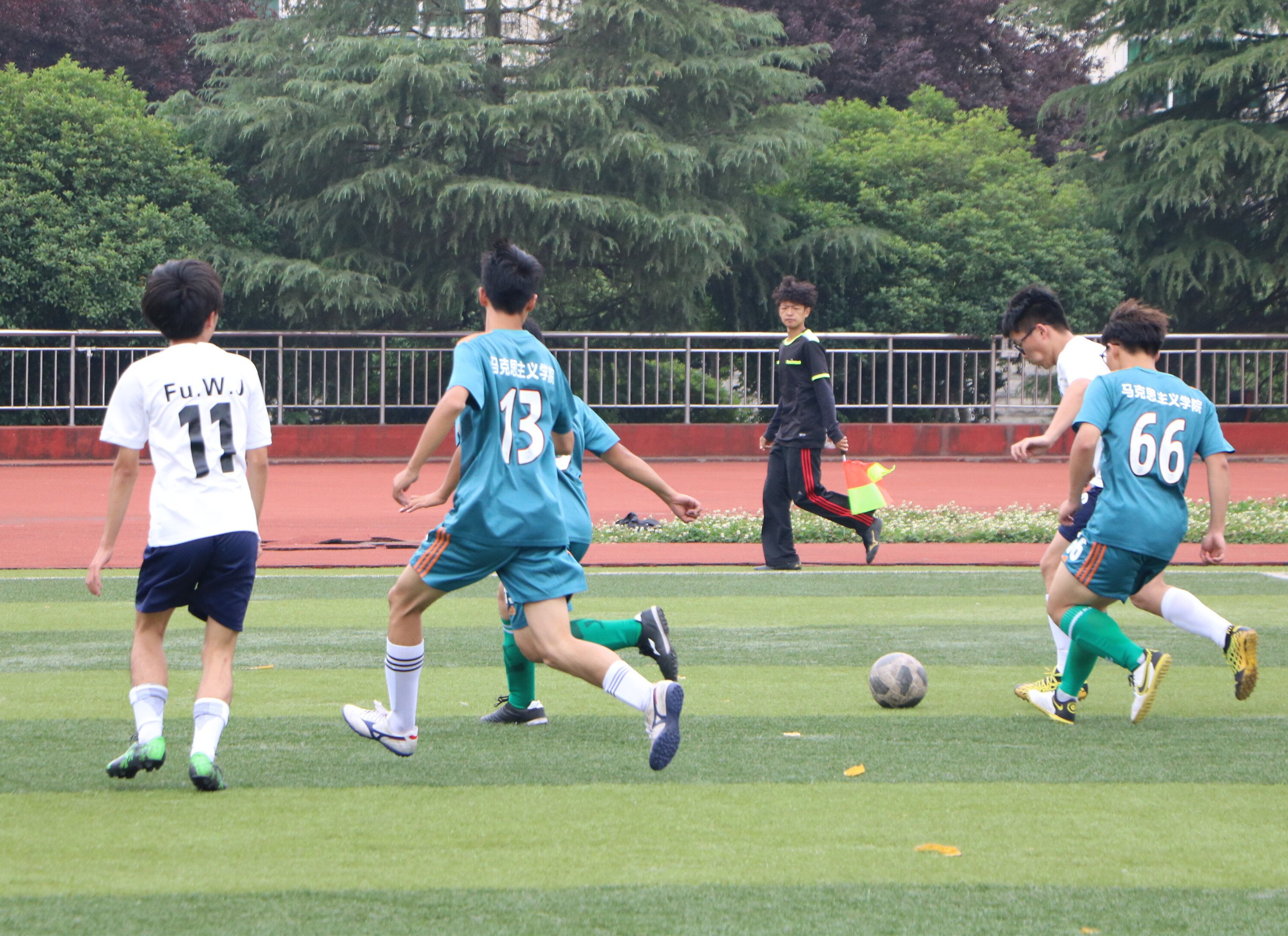 5月16日中午,beat365男子足球队与传媒学院男子足球队进行了八强淘汰赛次回合比赛,经过激烈对决,两院以1:1的比分持平。
