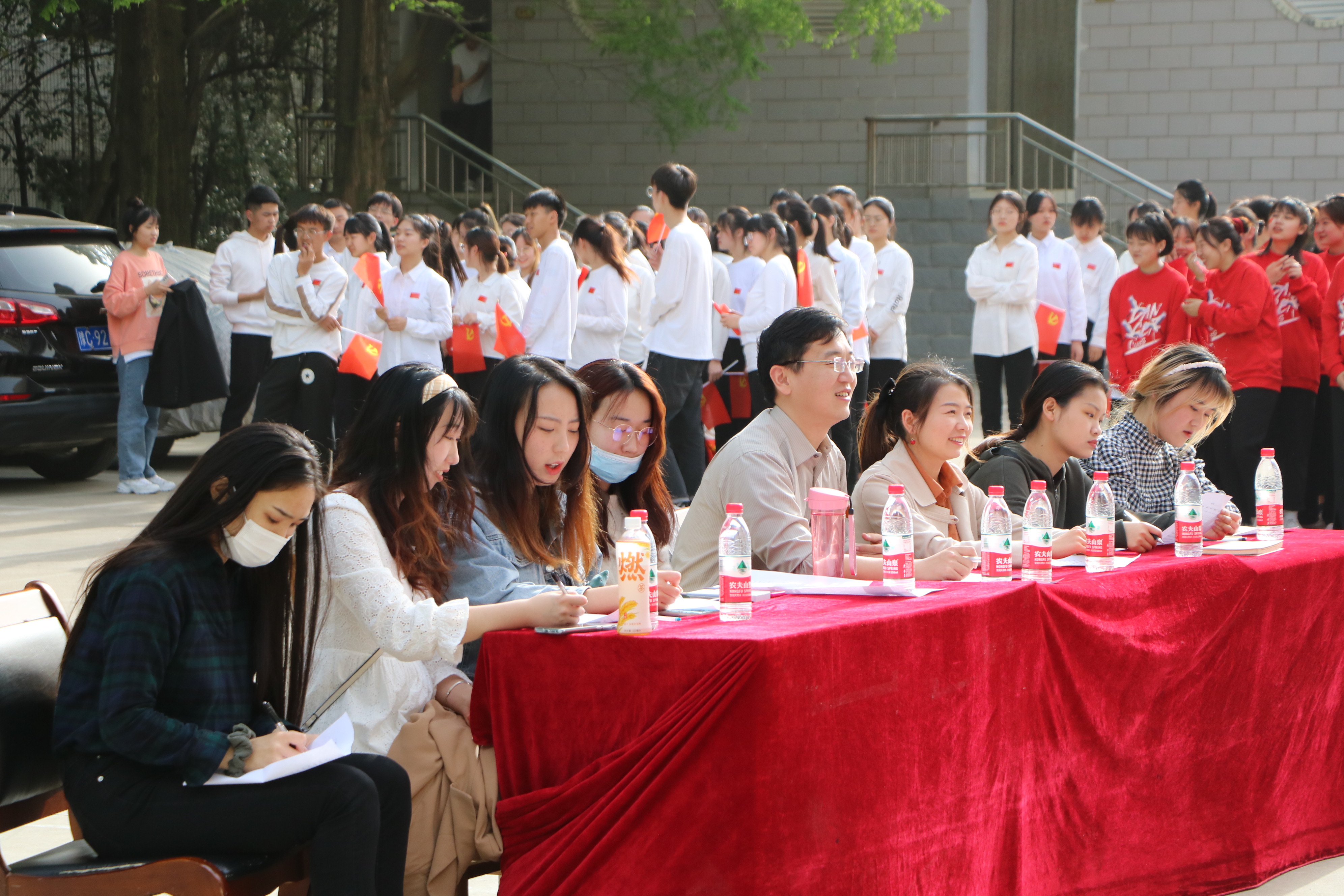 4月16日下午,beat365在线唯一官网在教八楼前举办“红歌颂党恩”合唱比赛。beat365团委书记曹栋、团委老师陶青青以及学生会主席团代表成员担任比赛评委,2019、2020级全体学生共同参加本次比赛。比赛由学生会副主席袁祖顺主持。