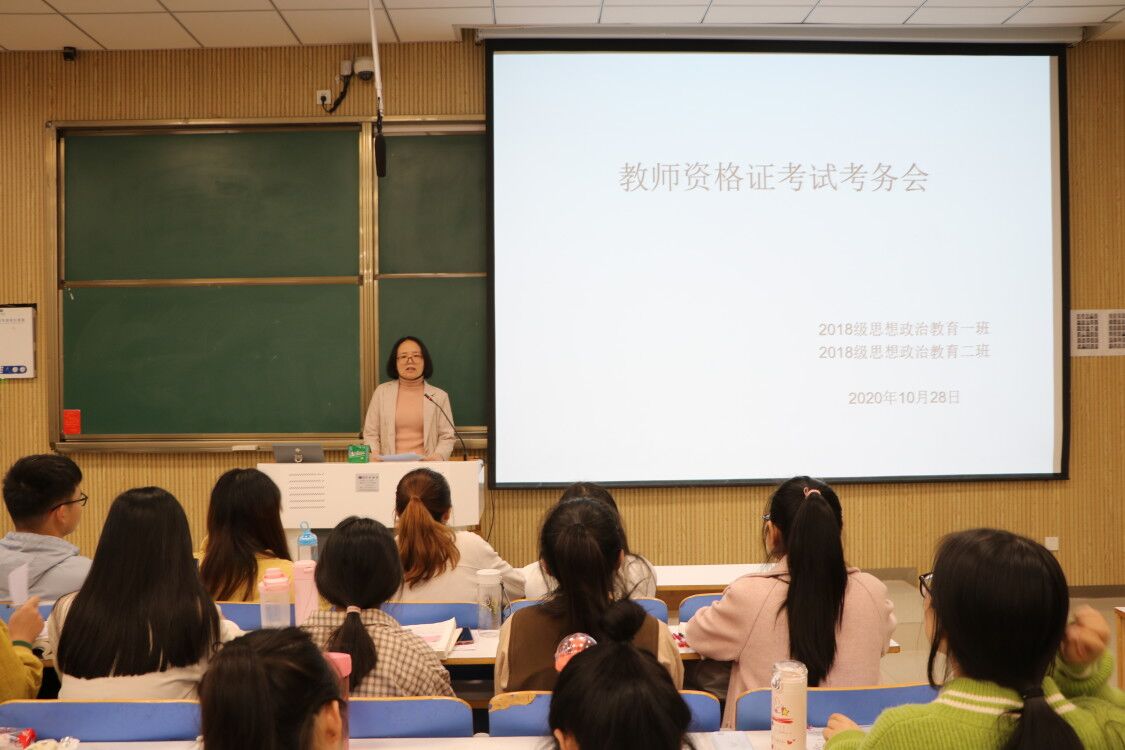 10月28日上午,beat365在线唯一官网在社科楼515教室顺利召开教师资格证考试考务会。辅导员曹菁菁以及2018级全体学生共同参加此次班会。班会由曹菁菁主持。