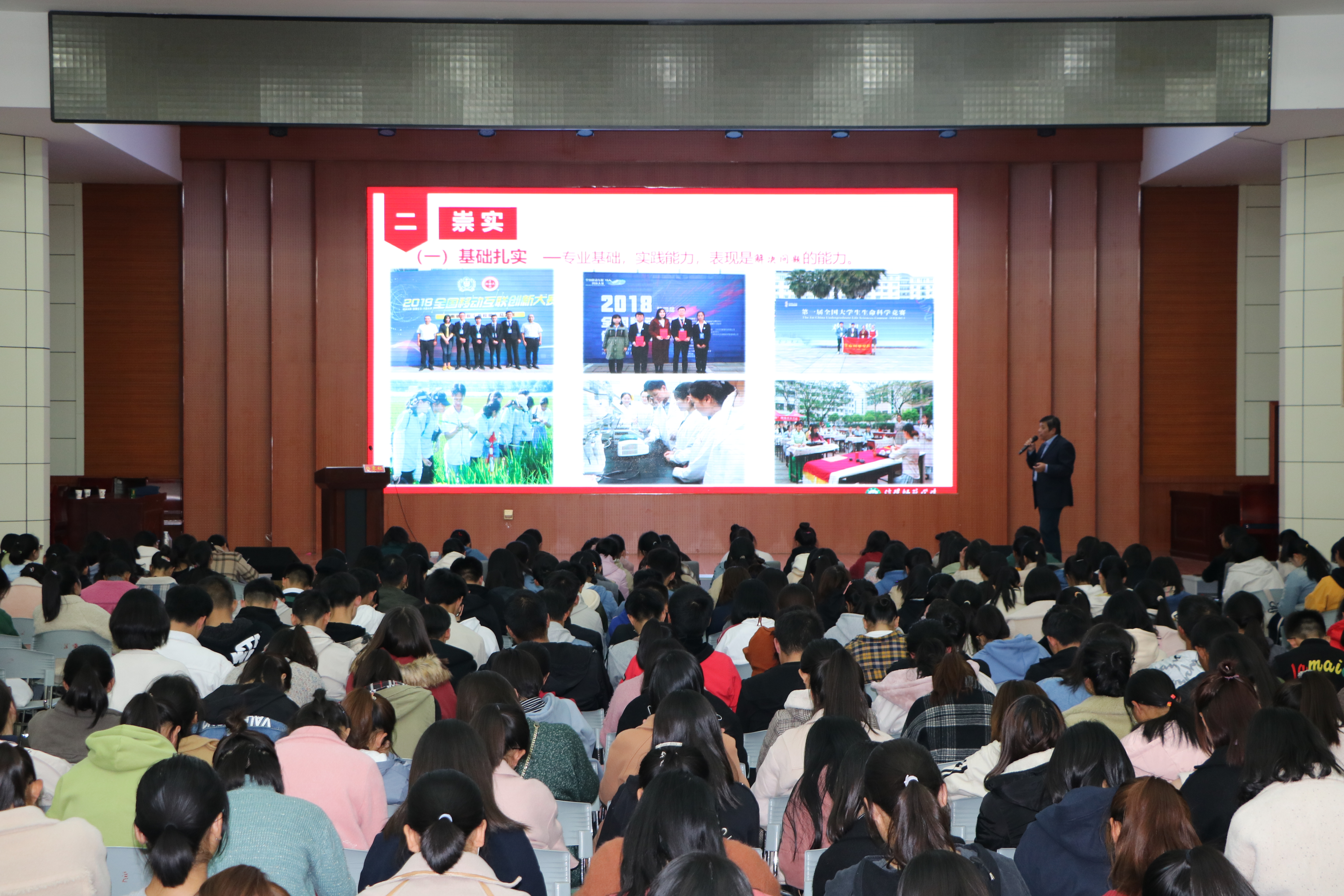 11月19日下午,生命科学学院党委副书记杨霁虹在逸夫楼报告厅为beat365新生团员讲授题为“校训引领我成长”的主题团课。beat365在线唯一官网团委书记曹栋、化学化工学院团委书记邓耀辉,beat365在线唯一官网、化学化工学院全体新生团员共同聆听本次团课。