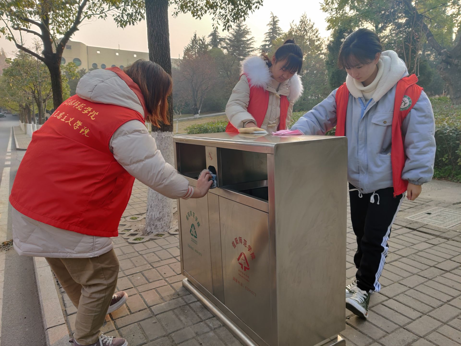 下午,beat365思想政治教育一班团支部书记贾子漪带领同学们在校园内进行垃圾桶清洁志愿服务活动。活动中,同学们擦除筒壁上的污渍,捡拾散落的垃圾并进行分类后放入桶内。明确的分工和默契的配合将校园垃圾桶清理得焕然一新。最后,同学们在一棵树广场发表了自己参与志愿服务后的心得体会,大家纷纷表示,日后的学习生活中要积极踊跃参加志愿活动,提高自身服务社会意识,争做优秀的青年团员。