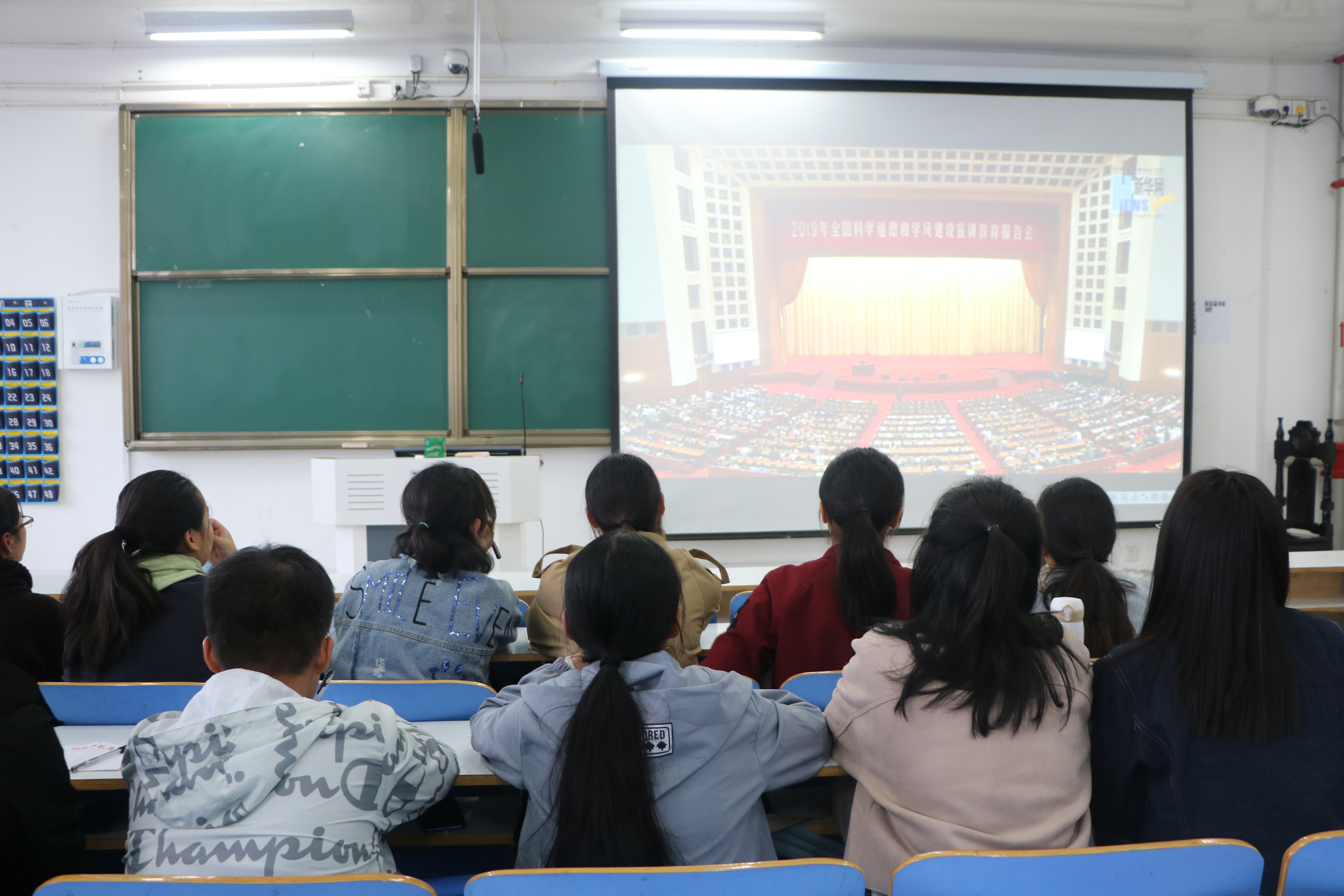 为学习贯彻习近平新时代中国特色社会主义思想和习近平总书记关于科学道德和学风建设的重要指示精神,推进beat365科学道德和学风建设工作,11月13日下午,beat365在线唯一官网组织学生在社科楼516教室观看2019年全国科学道德和学风建设宣讲教育报告会直播。