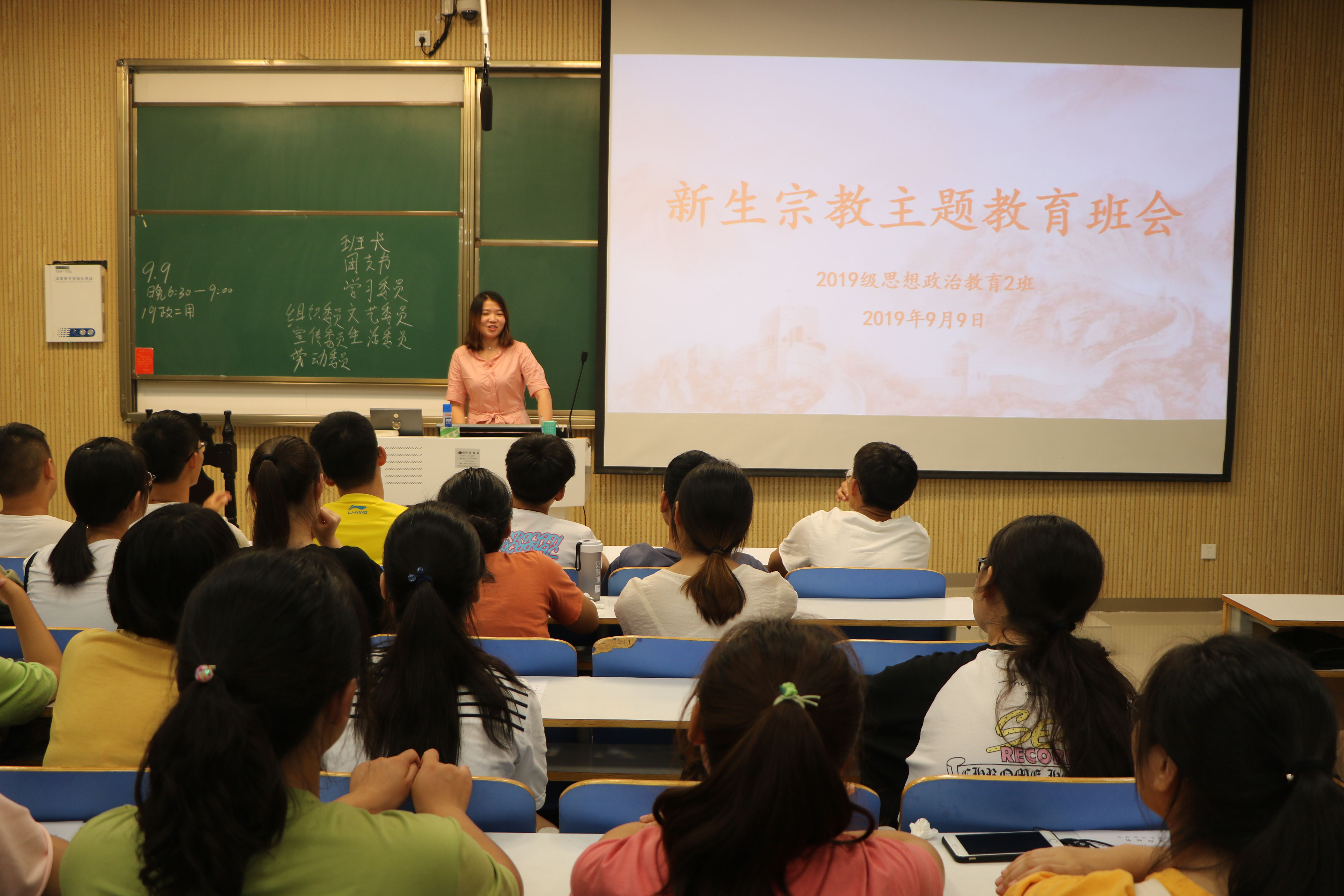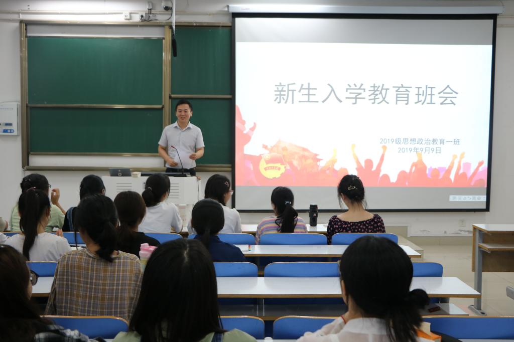9月9日晚,beat365在线唯一官网在社科楼515、516教室顺利开展新生入学教育班会。团委书记曹栋、辅导员陶青青以及2019级全体新生共同参加了此次班会。班会由班级负责人王文芳、王雅纯、曲新宇和艾子元主持。