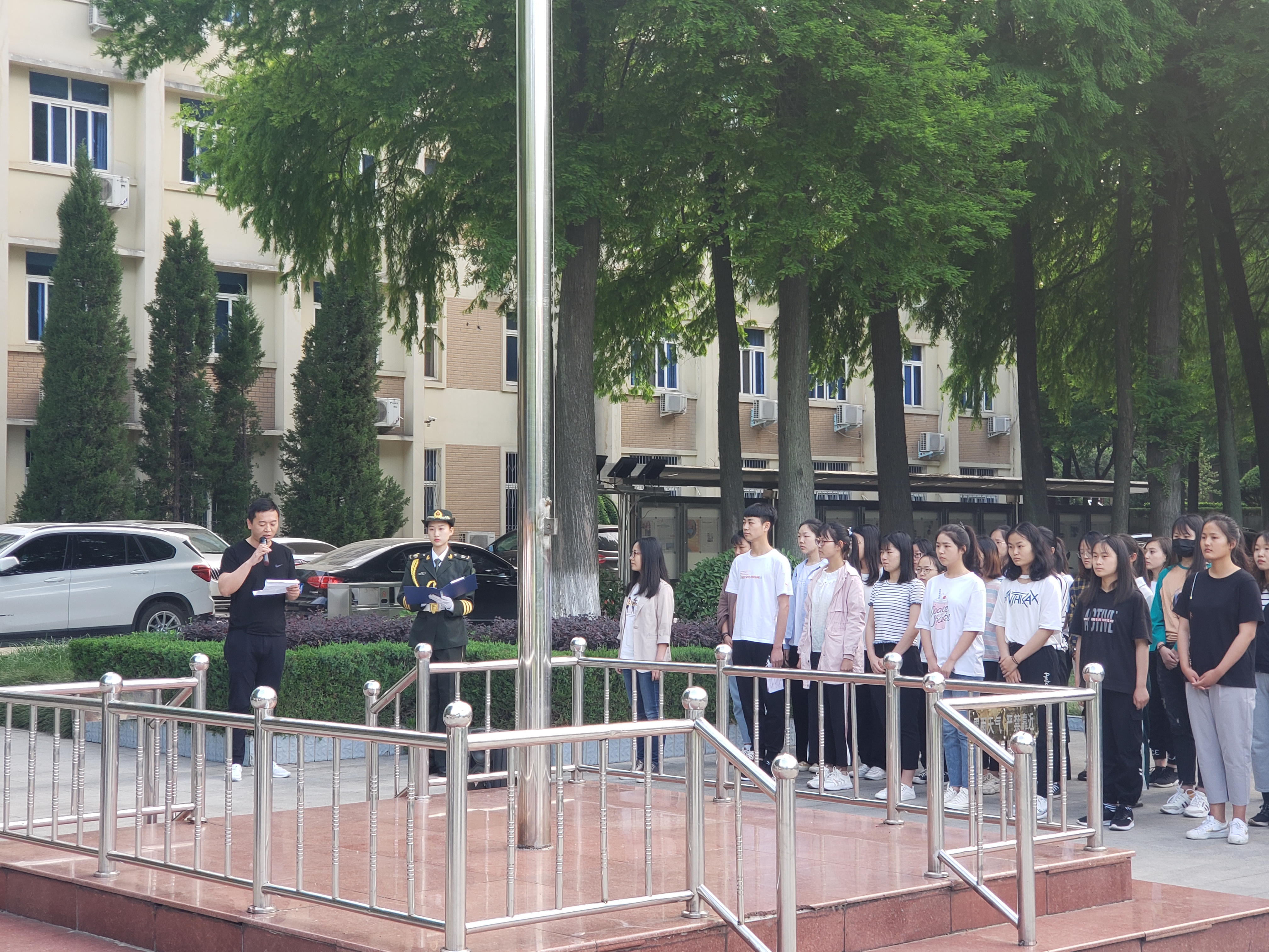 5月20日清晨,beat365在线唯一官网于行政楼隆重举行升旗仪式。beat365团委书记曹栋,专职辅导员曹菁菁,我校国旗护卫队和2018级全体学生参加本次升旗仪式。仪式由国旗护卫队莫铭非主持。