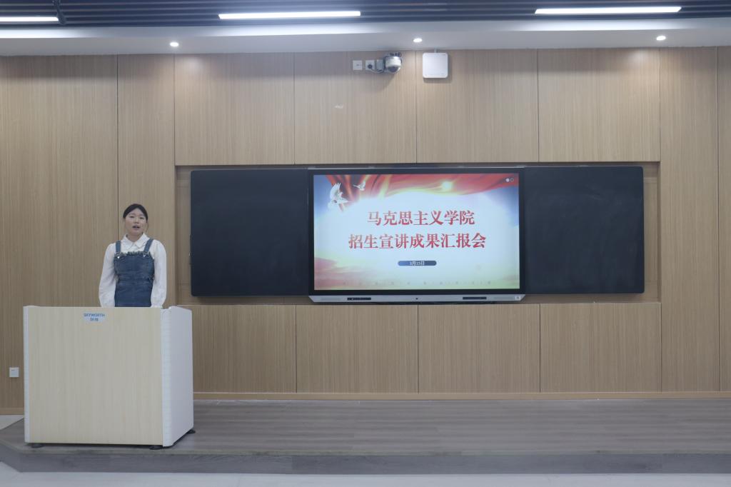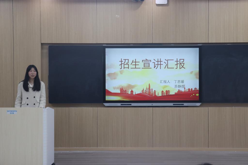 会上,各宣讲团队代表从团队介绍、活动准备、招生宣讲、答考生问、心得感悟、问题及改进措施六方面进行汇报。团队成员通过展示图片、视频,发放宣传资料等方式,从不同角度展示了我校在校园文化、学习氛围、学科建设、教育资源、师资力量等方面的优势,加深中学生对我校整体的了解,激发学生的报考热情。其中,挥笔写芳华,逐梦信师大宣讲队打破空间局限,在校园宣传的同时深入社区,扩大宣传范围。团队队员采取面对面、小范围、互动式回答的方式为同学们答疑解惑。该团队成员表示,此次招生宣传活动不仅提升了自身能力,更扩大了我校的知名度、影响力,对学校招生宣传工作起到积极作用。