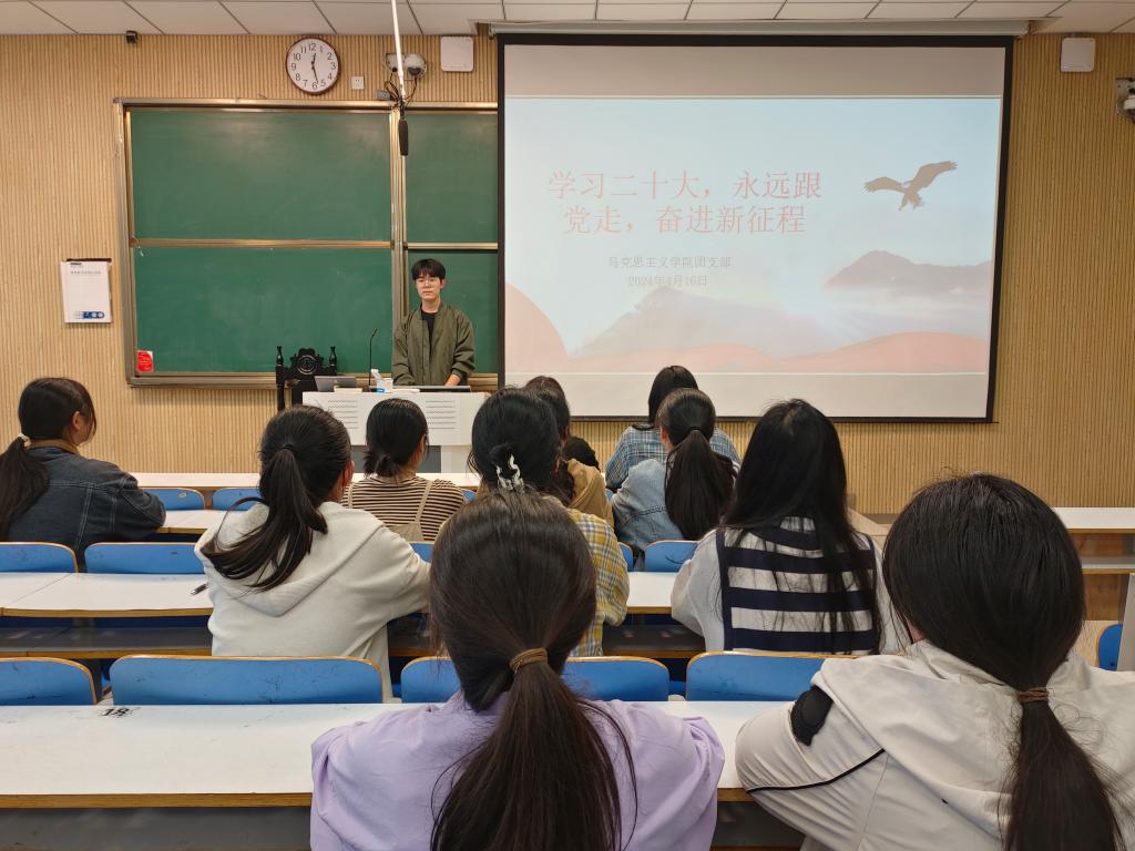 4月16日上午,beat365在线唯一官网团委学生会在社科楼515教室召开“学习二十大,永远跟党走,奋进新征程”主题团课。beat365团委学生会全体成员共同参加此次团课。团课由支部委员刘英凯主持。