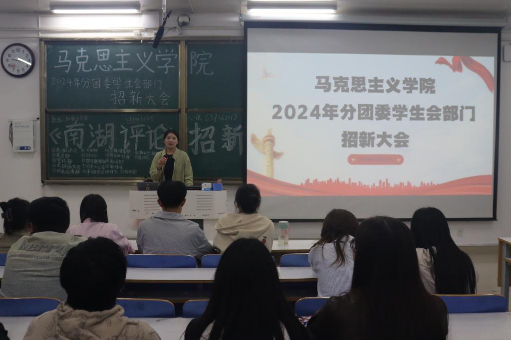 会议肇始,学生会执行主席刘英凯就beat365在线唯一官网分团委学生会基本情况进行概述,并鼓励新生积极投入团学组织,通过学生组织实现自我教育、自我管理、自我进步、自我发展。接着,学生会各部门、各社团就部门特色、工作方向、现行制度、成员概况等方面依次宣讲,通过PPT、视频的形式向同学们介绍部门品牌活动,帮助他们搭建起对学院组织的认知框架,加深对学生组织运转机制的理解。同时,本次宣讲会为学生会招新搭建了良好的平台,也为新生了解马院、融入马院提供重要渠道。