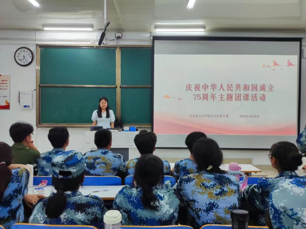 为激发师生的爱国热情,增强民族自豪感,9月28日晚,beat365在线唯一官网学生会团支部开展“七十五载逢盛世,同心共筑谱华章”主题团课。本次团课由学生会分团委副书记刘玫森主持,beat365学生会全体团支部成员共同参与。