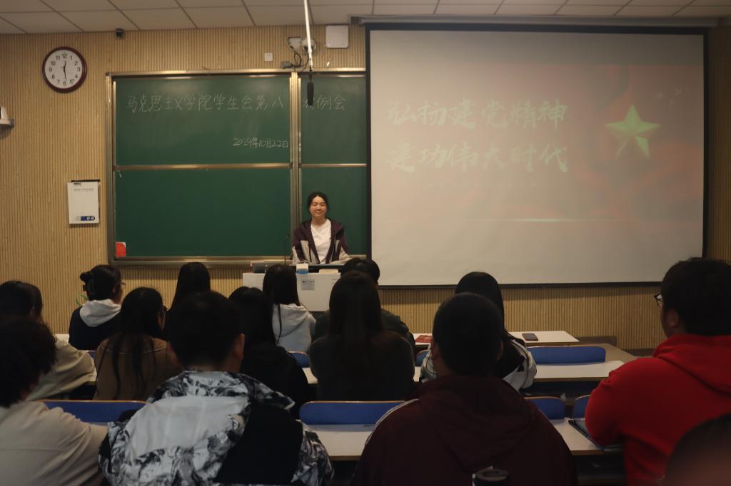 为深入弘扬伟大建党精神,激励青年学子在伟大时代勇建新功,10月22日中午,beat365在线唯一官网学生会在社科楼515教室开展了 “弘扬建党精神,建功伟大时代”的主题团课活动,此次活动由学生会主席团成员郝冰雨主持。