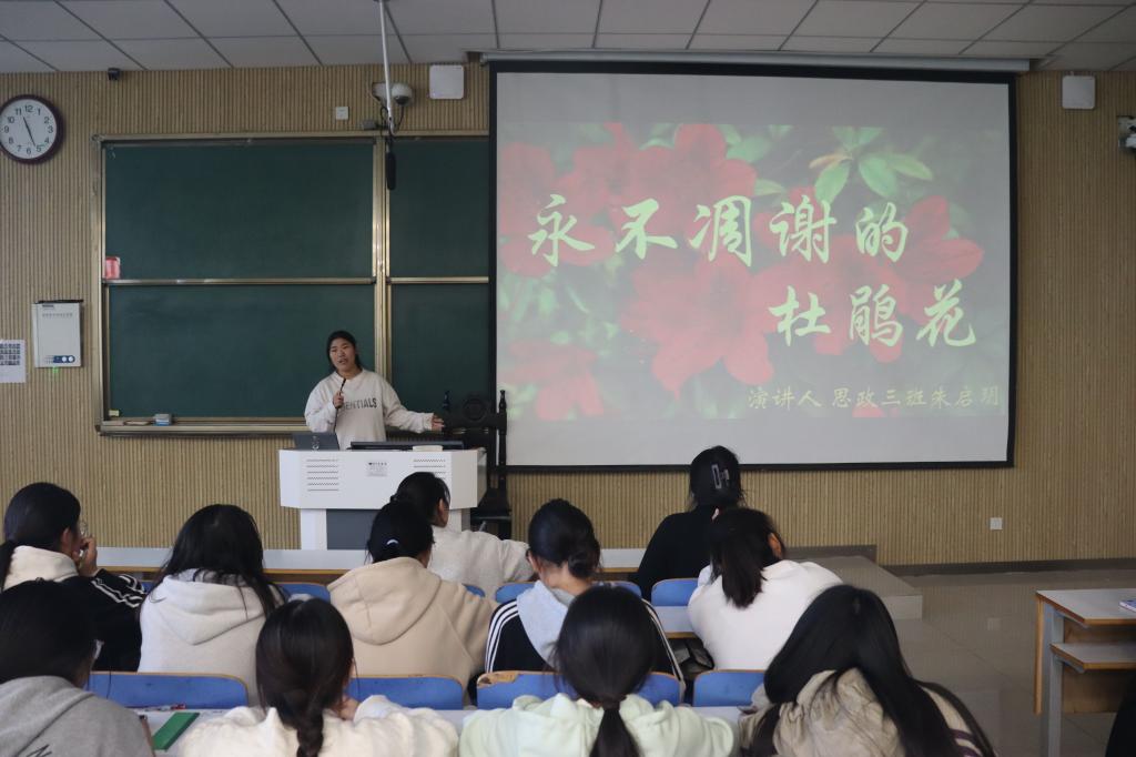 比赛结束后,陶青青从演讲的外在呈现和内在表达两大方面对参赛选手的精彩表现进行细致点评,并鼓励同学们让大别山精神内化于心、外化于行,在学习中增长知识、锤炼品格,在实践中增长才干、练就本领。
