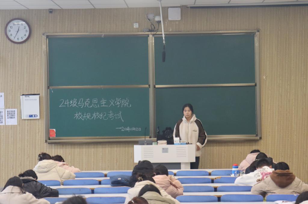 为强化学生规则意识,保障beat365后续教学及管理工作的顺利开展,11月25日中午,beat365在线唯一官网在社科楼514、515教室组织2024级新生进行校规校纪考试。beat3652024级全体新生共同参加考试。生活劳卫部龚雪鑫、曹慧茹担任监考员。